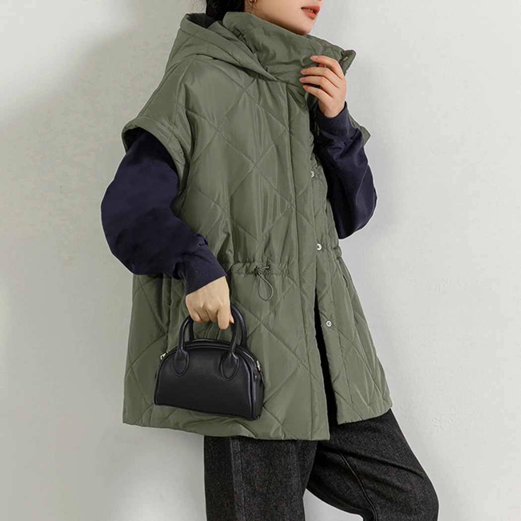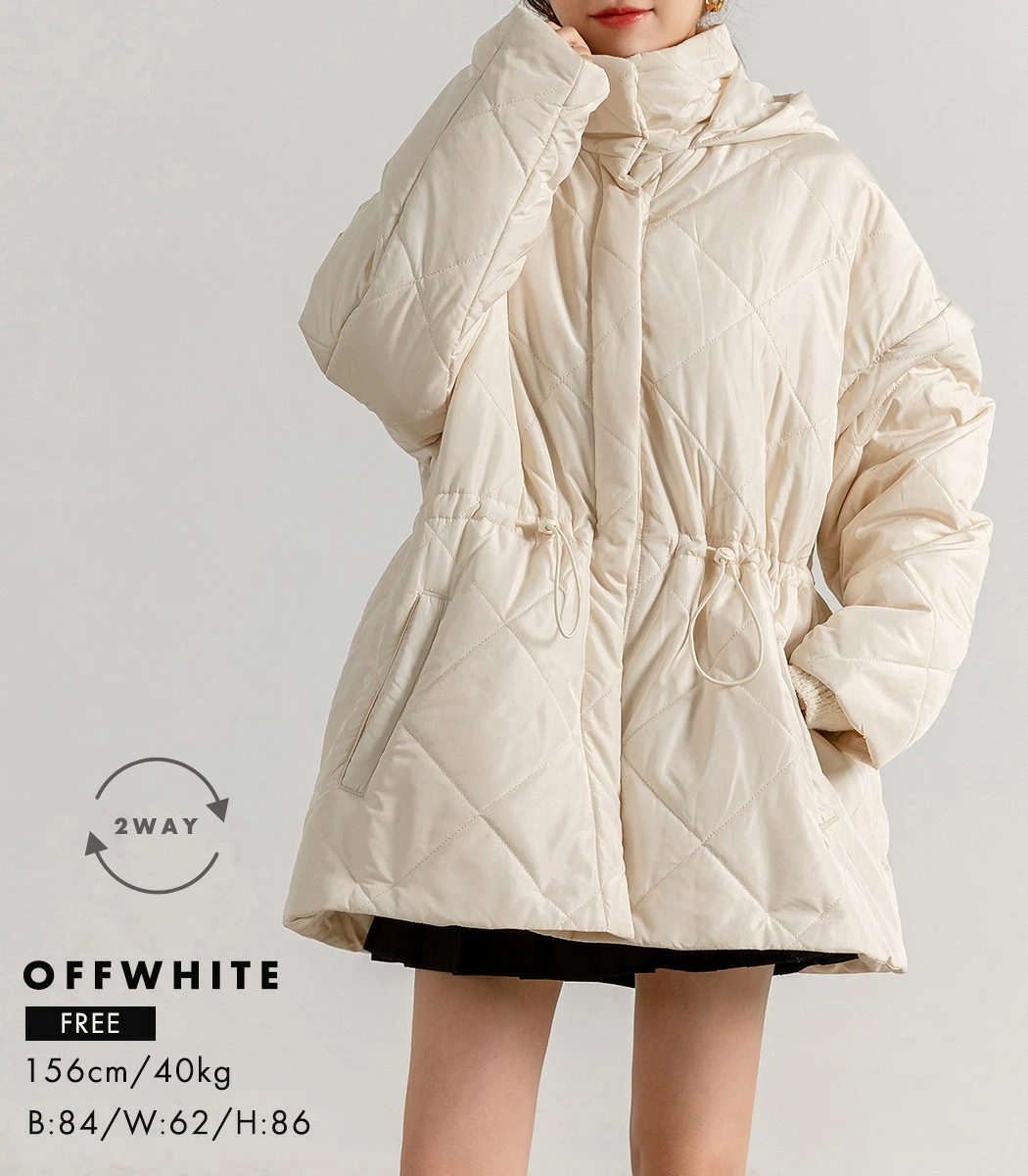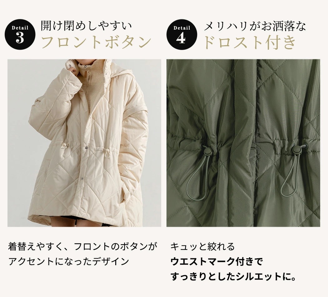 ,,キルティング ジャケット 2way 長袖 袖取り外し 半袖 ショートコート 上着 羽織り アウター レディース 防寒 暖かい ハイネック フード ポケット ドロップショ