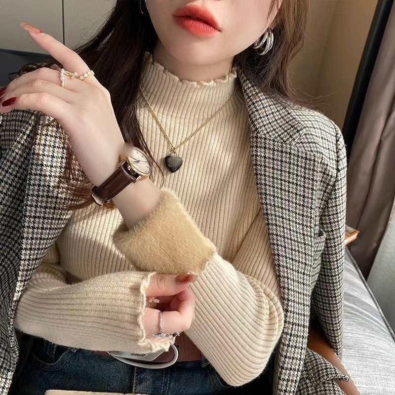 ニット セーター裏起毛 韓国ファッション 新作 タートルネック カシミヤセーター 大人気 オシャレ 純色 長袖 無地 可愛い
