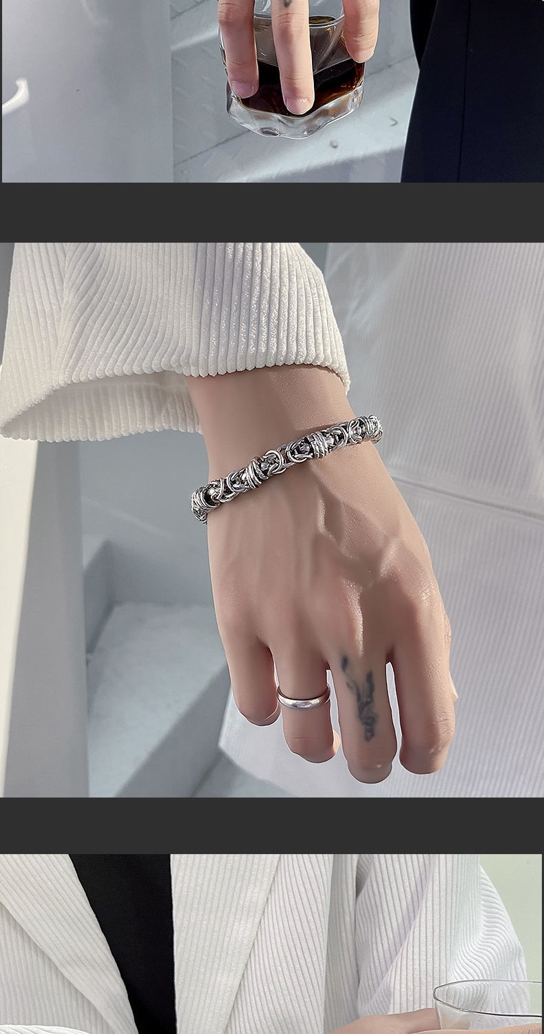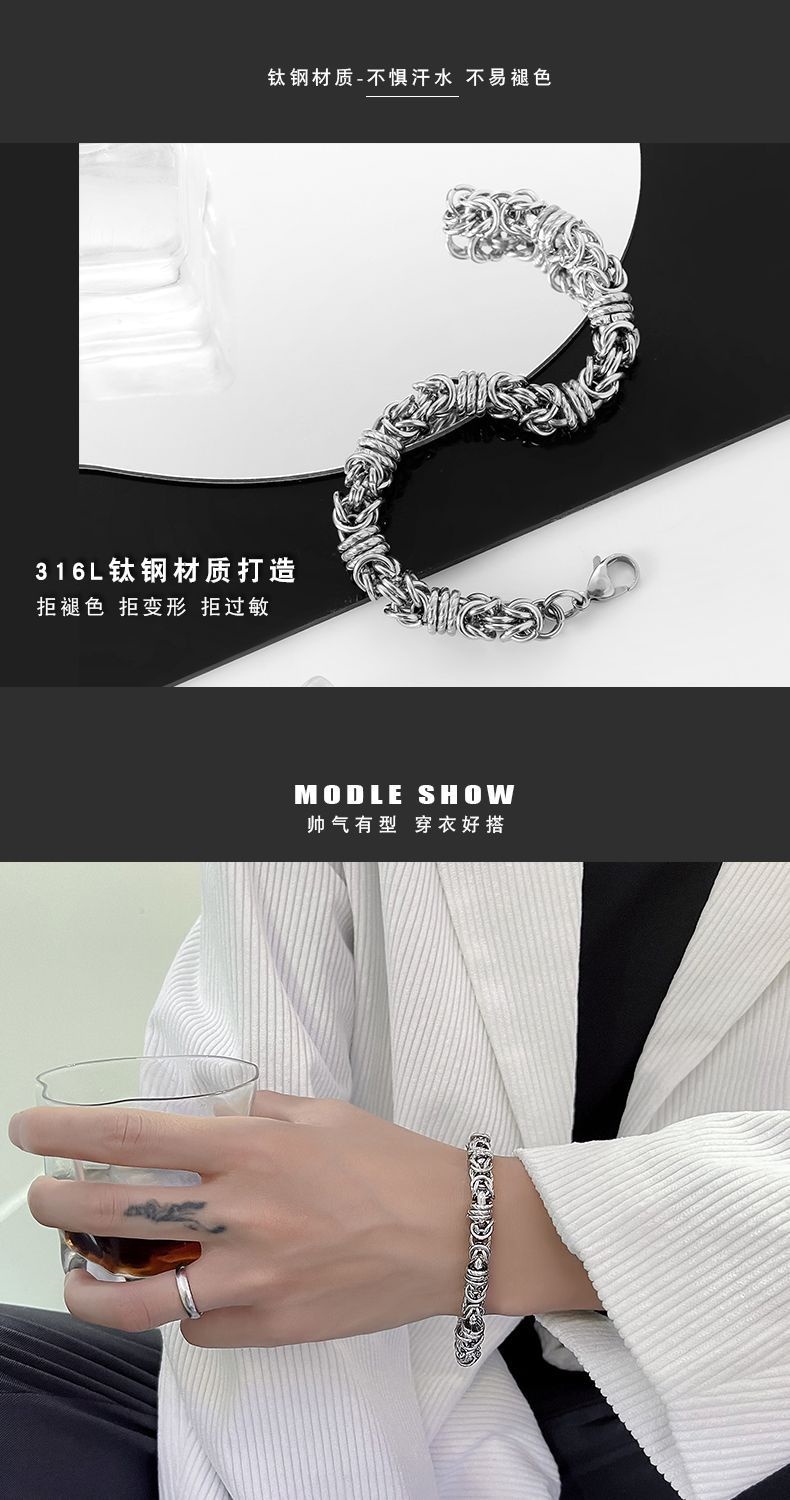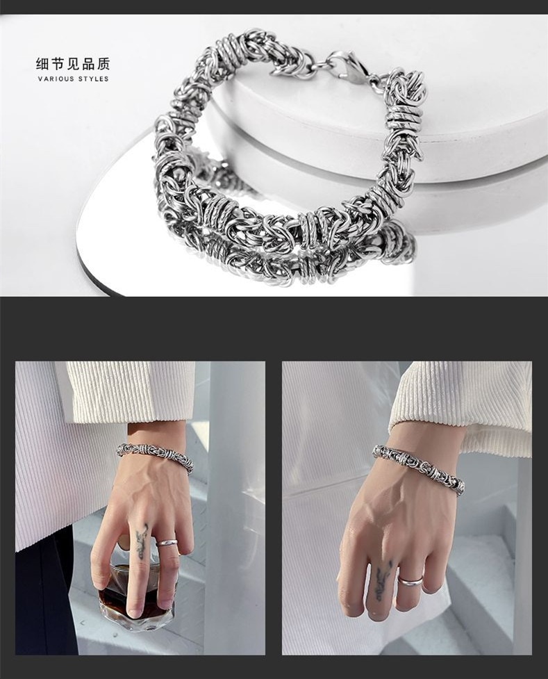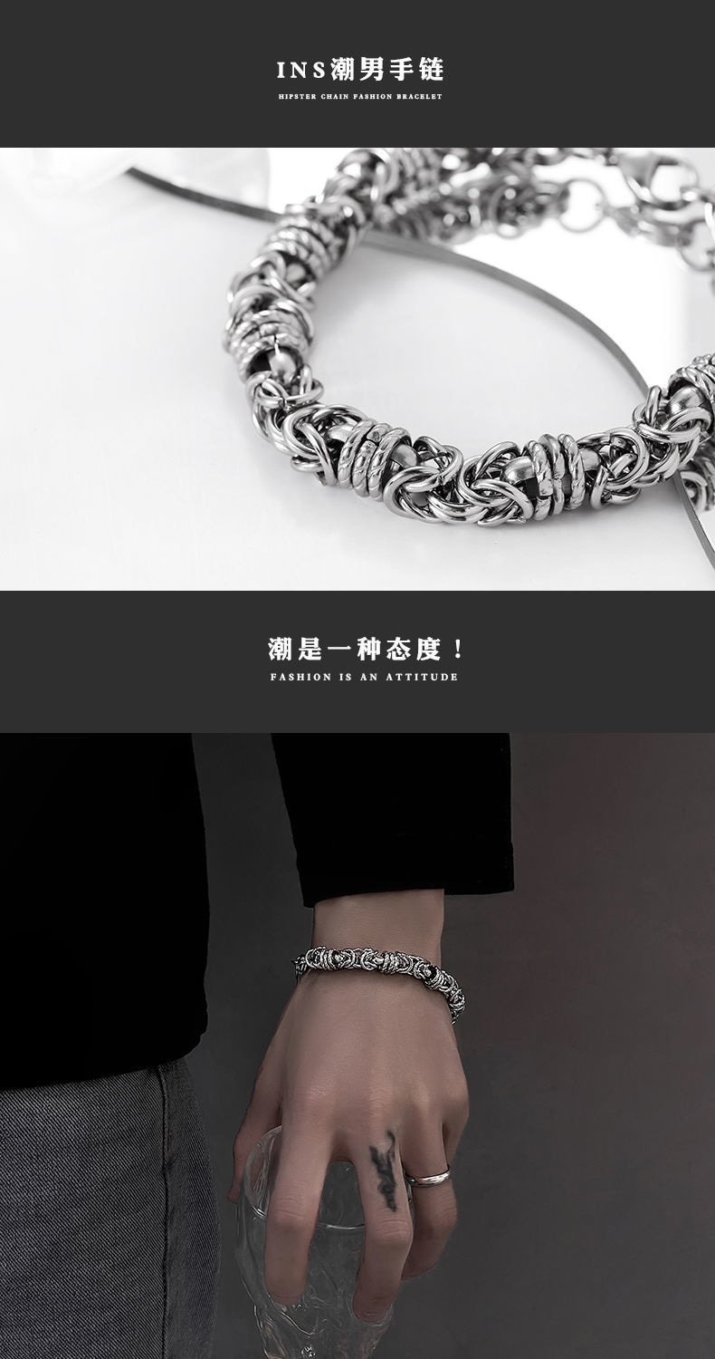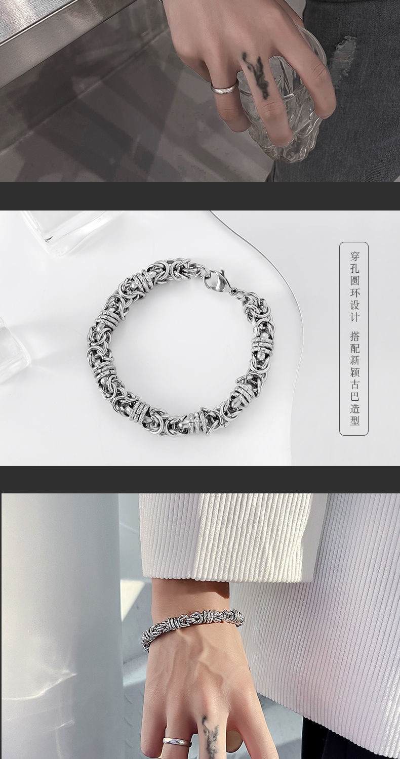 バングル 韓国 ファッション ブレスレット シルバー メンズ 個性 アクセサリー シンプル 腕輪 チタン鋼 チェーン ブレスレット
