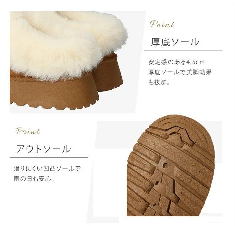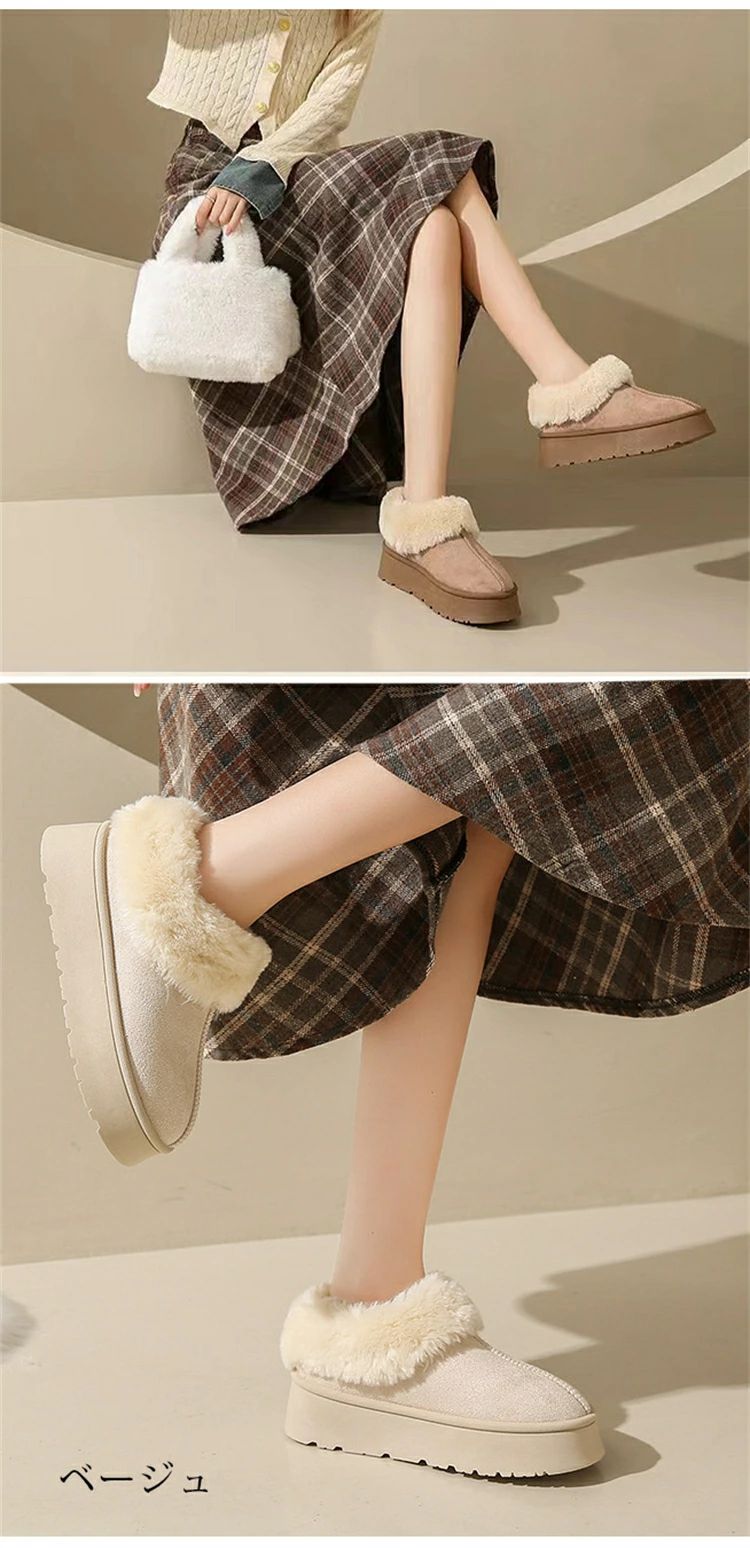 ムートンブーツ 厚底 スリッポン レディース 4.0センチヒール ブーツ ショート レディース 厚底ムートン 厚底ブーツ 旅行 レジャー 疲れない 軽量 ファー ボア もこもこ あたたかい おしゃ