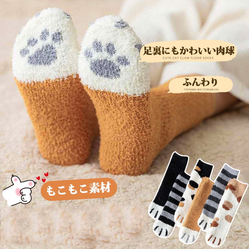 3足選べる もこもこ ルームソックス 猫 ネコソックス かわいい 猫肉球 あったか 冷え取り靴下 防寒あったか靴下 防寒靴下 くつ下 発熱 ソックス 暖かい靴下 ソックス もこもこソックス ふわふわ