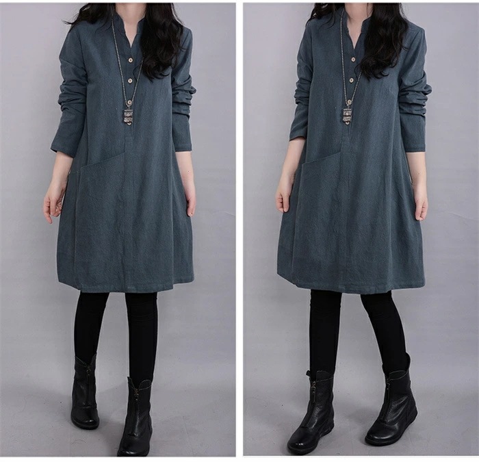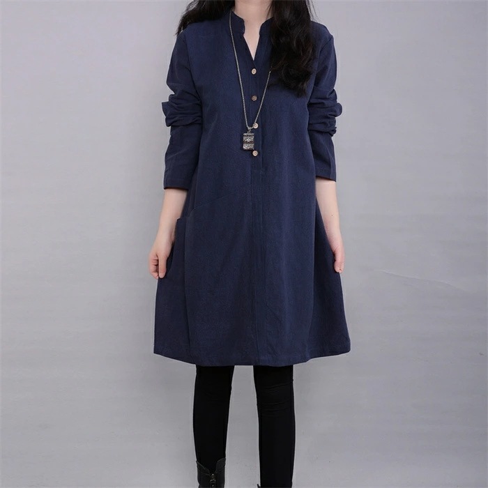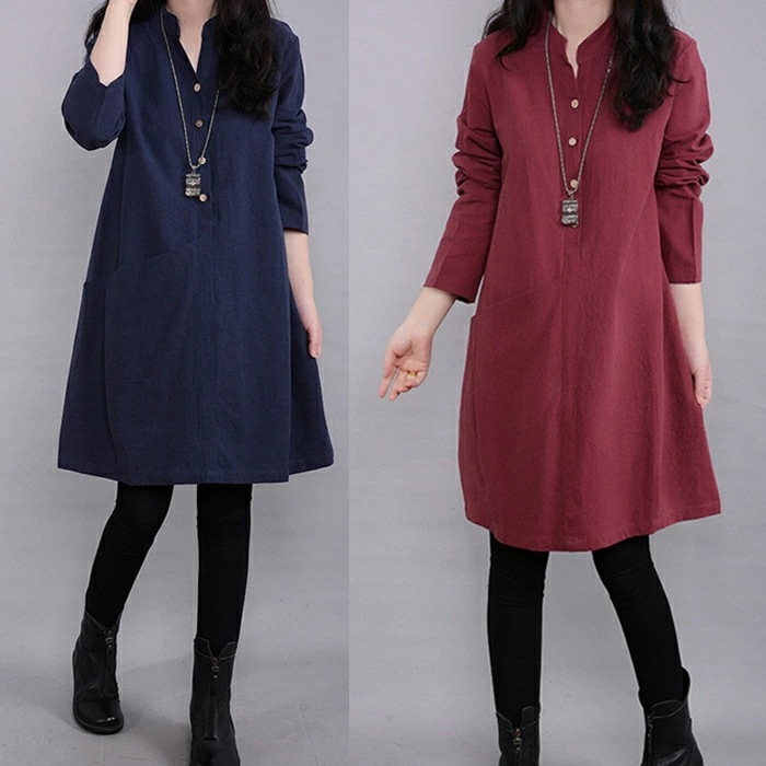 チュニックブラウス ロングシャツ レディース チュニックワンピース プルオーバー シャツ 長袖 スタンダードカラー 綿麻風 無地 トップス コットン リネン混 森ガール キレイめ 大きいサイズ 体型