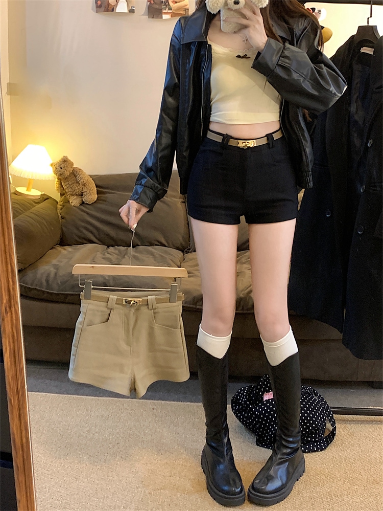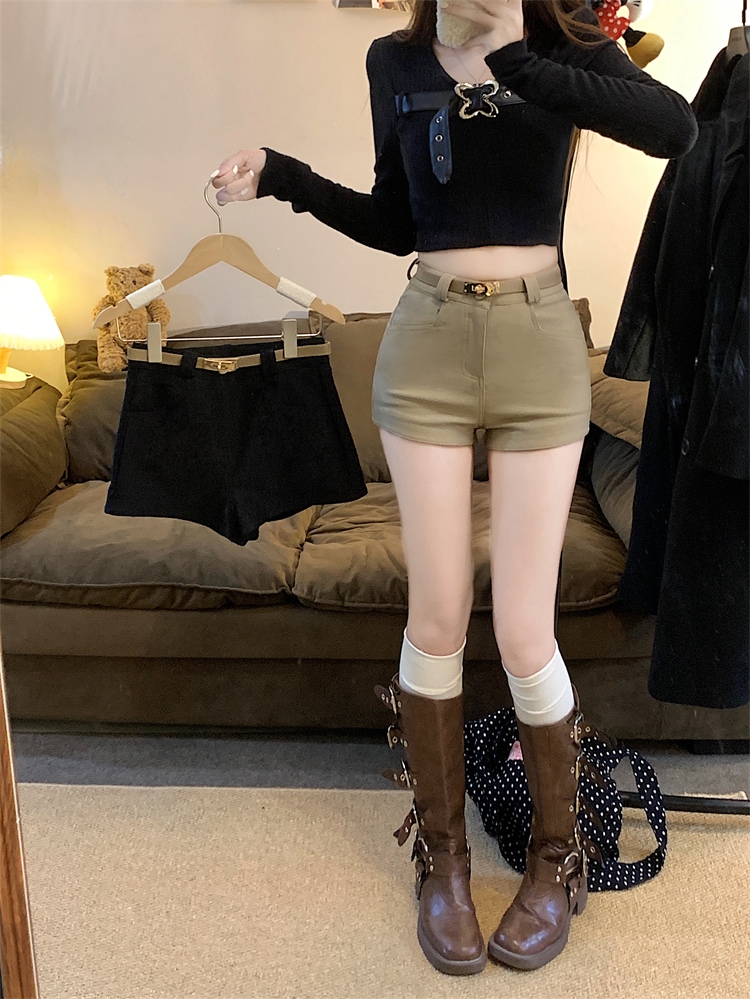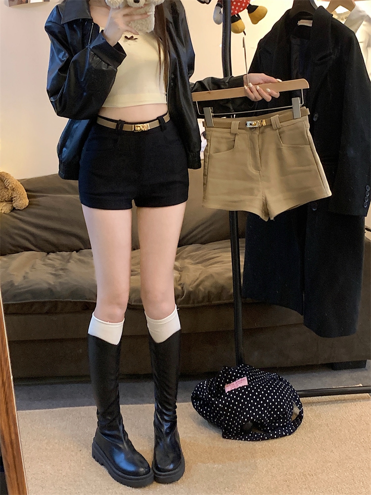 ショートパンツ 防寒パンツ Aライン ショート丈ストレートハイウエストショートパンツゆったり 脚長 美脚細見え 韓国ファッションパンツ レディース