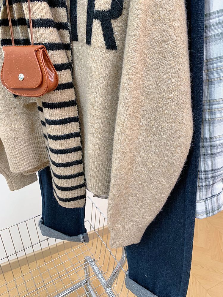 韓国ファッション 人気なリブニット ニットセーター トップス ニット インナー ベーシックニット 丸ネック ゆったりスウェット丸ネックリブニット