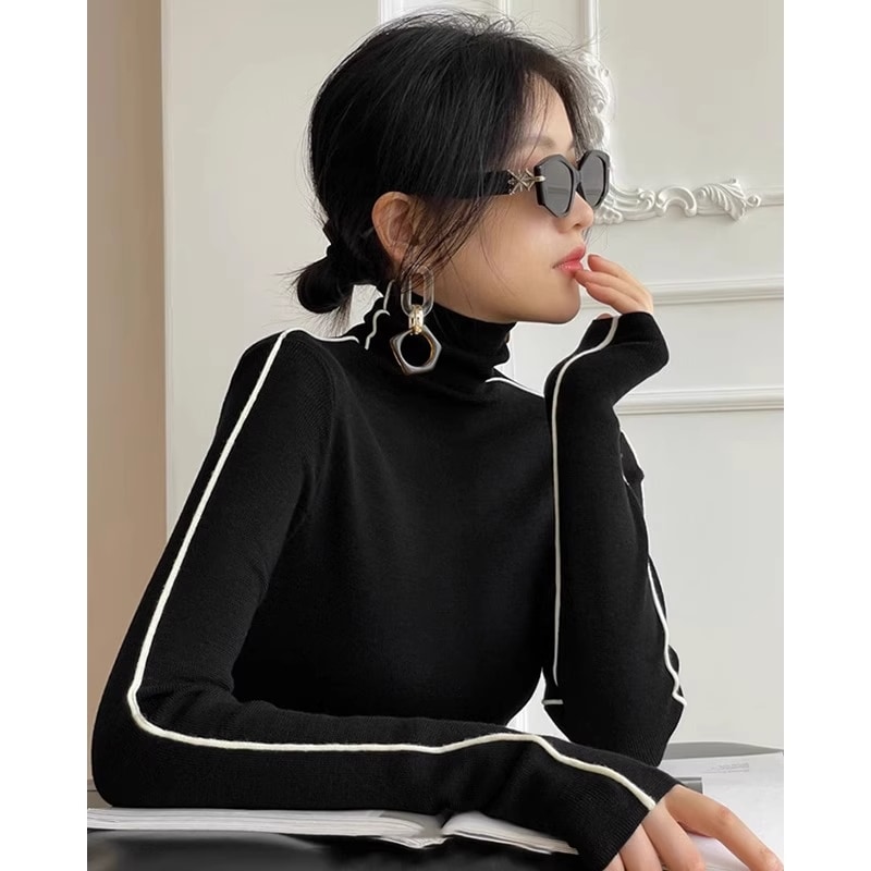 韓国ファッション 人気なリブニット ニットセーター トップス ニット インナー ベーシックニット 丸ネック ゆったりスウェットタートルネックリブニット