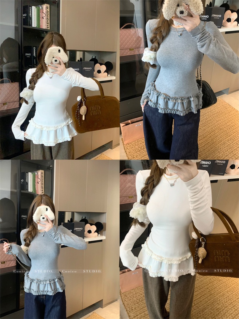 韓国ファッション 2025新作 インナートップス Tシャツ 長袖ブラウス スウェットおしゃれ かわいい 長袖tシャツ レディース 厚手 保温 トップス