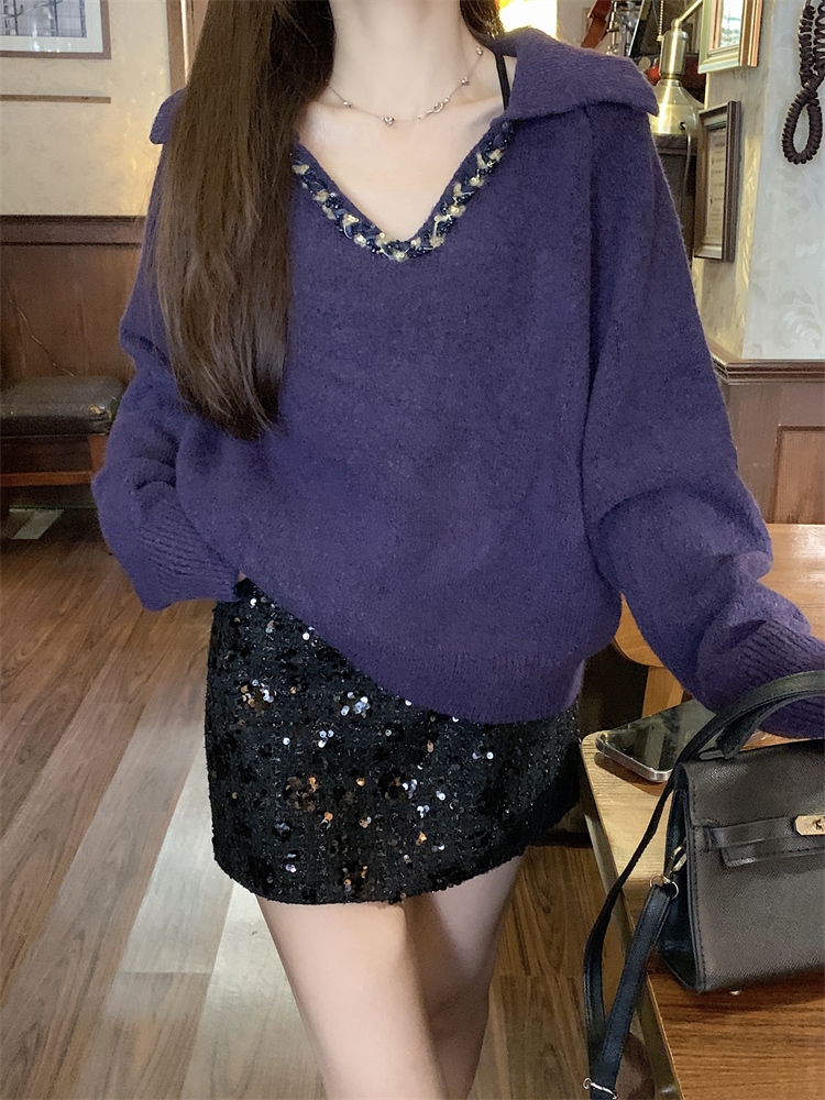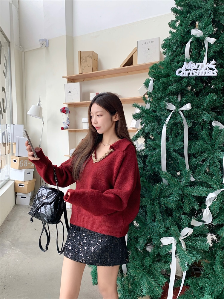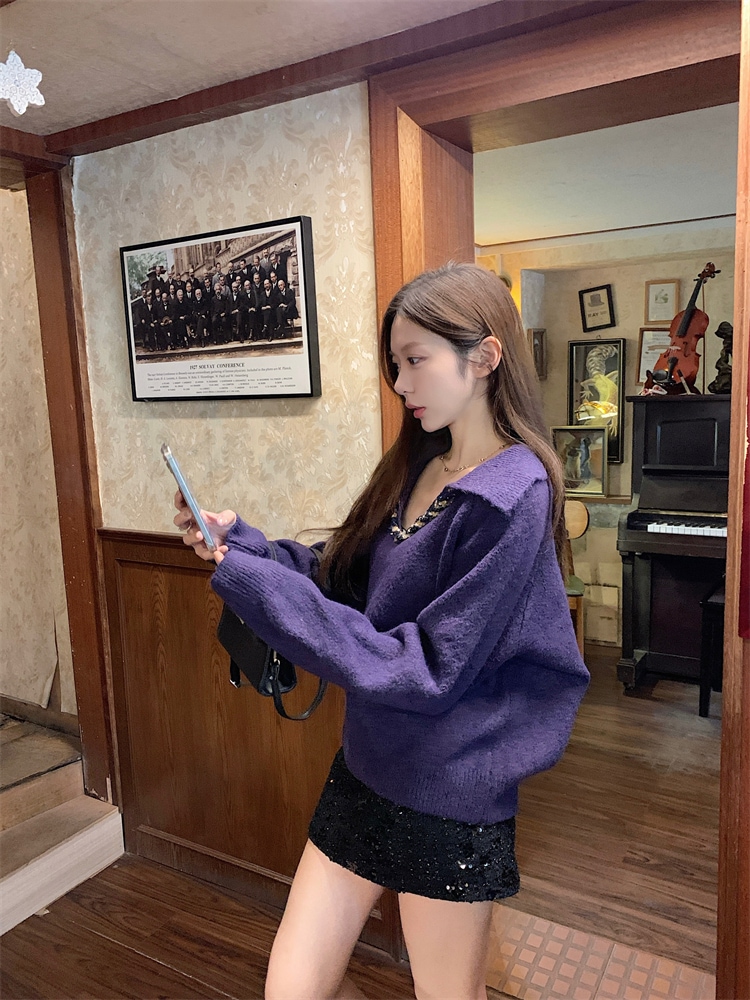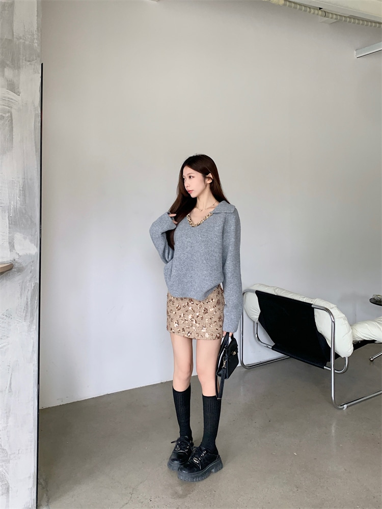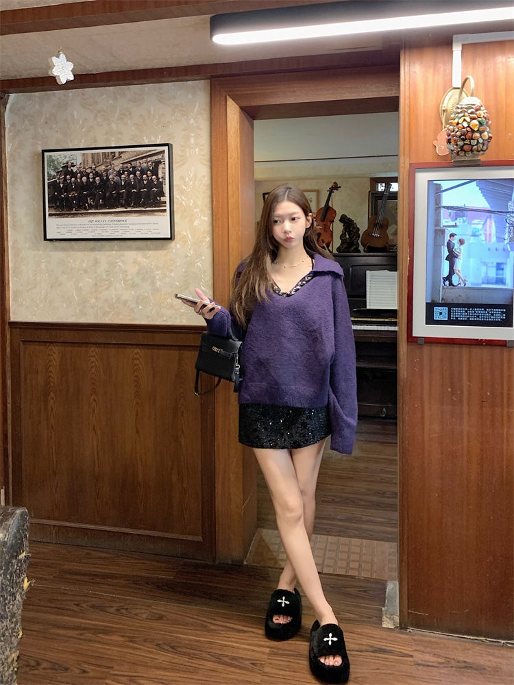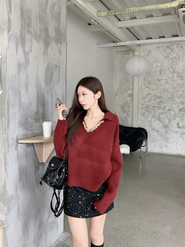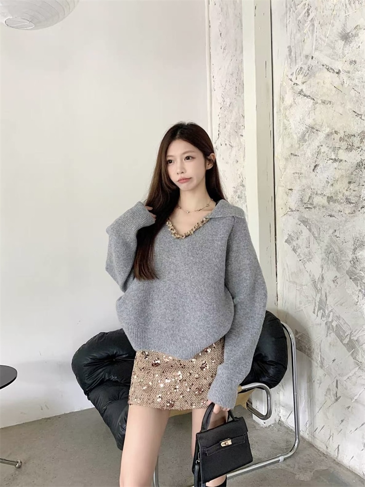 韓国ファッション 人気なリブニット カシミヤタッチ ニットセーター トップス ニット インナー ベーシックニット Vネックゆったりスウェット リブニット