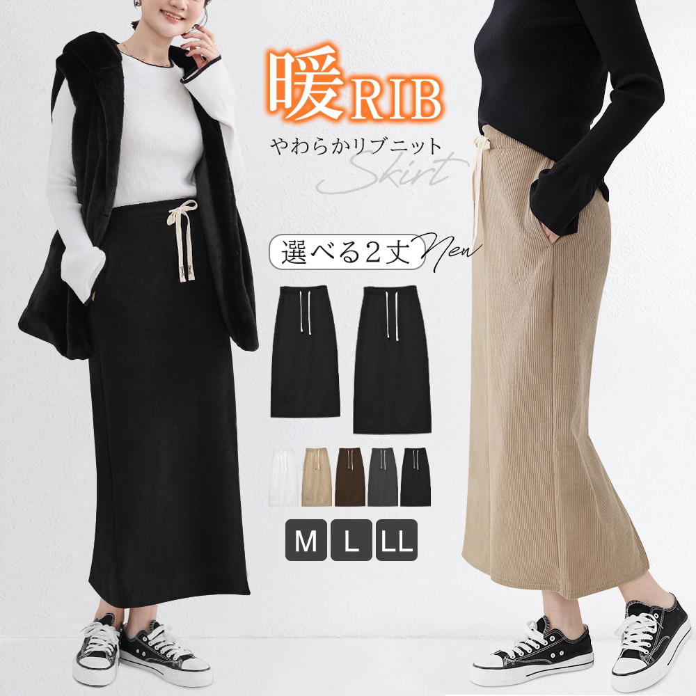 裏起毛ver入荷 累計70万枚突破 丈が選べる裏起毛スカート 韓国ファッション リブ ワイドレッグスカート レディース 無地 シンプル ゆったり リラックス