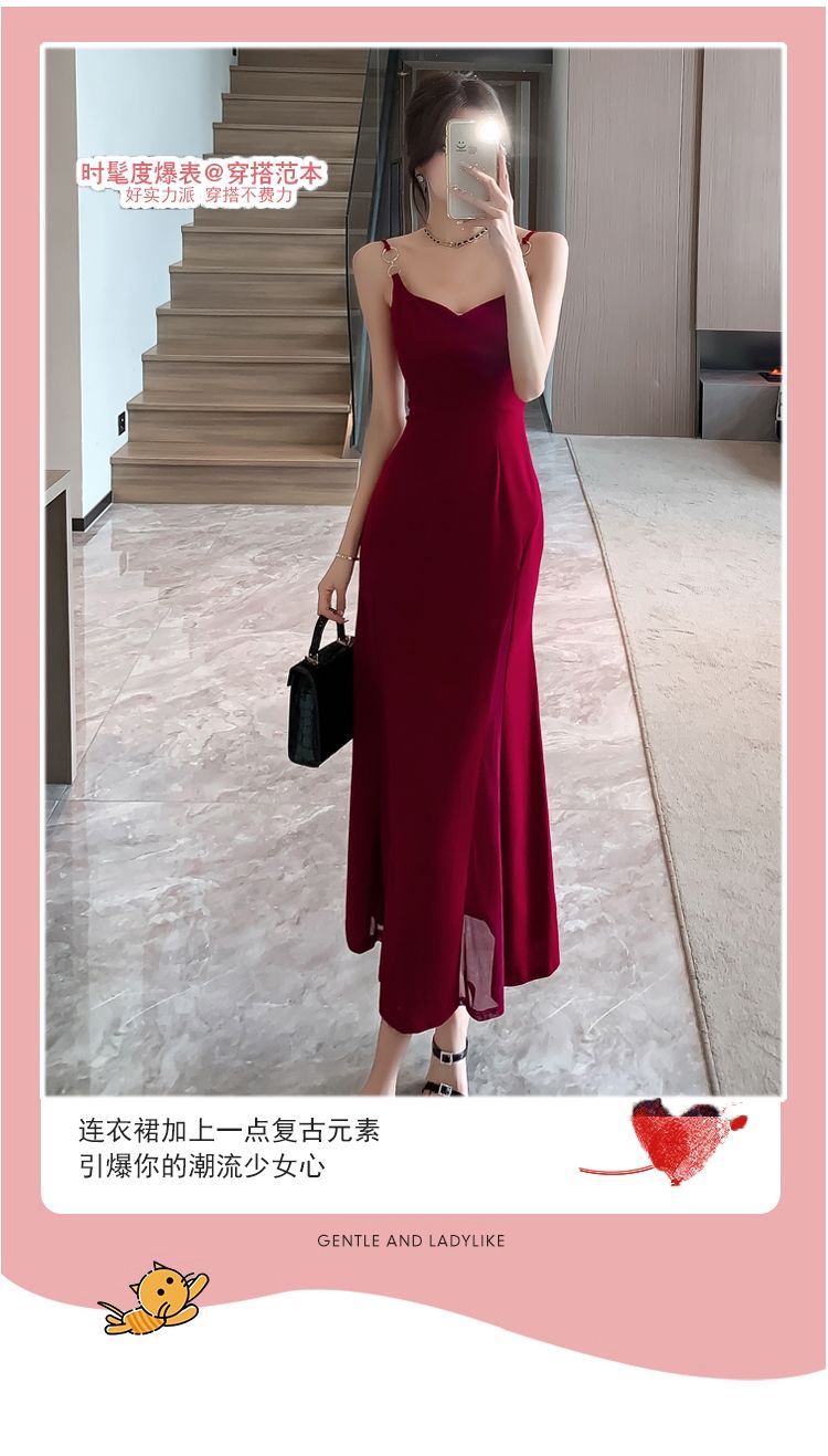 シーズン ティーブレイク レッド サスペンダードレス フェミニニティ シニア セクシー ロイヤルシスター パッケージ ヒップ ロングスカート