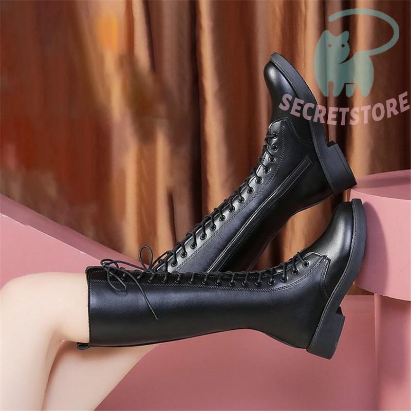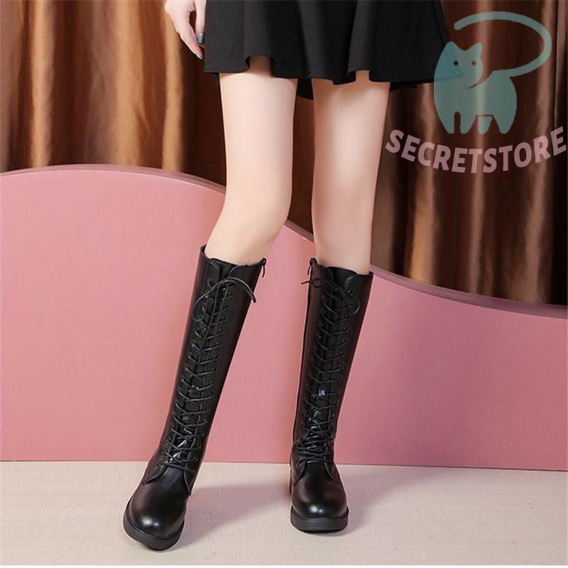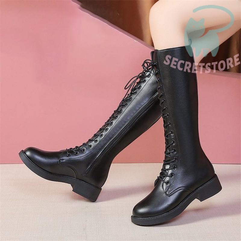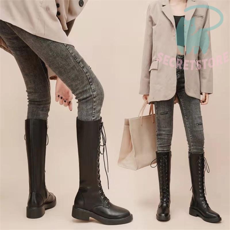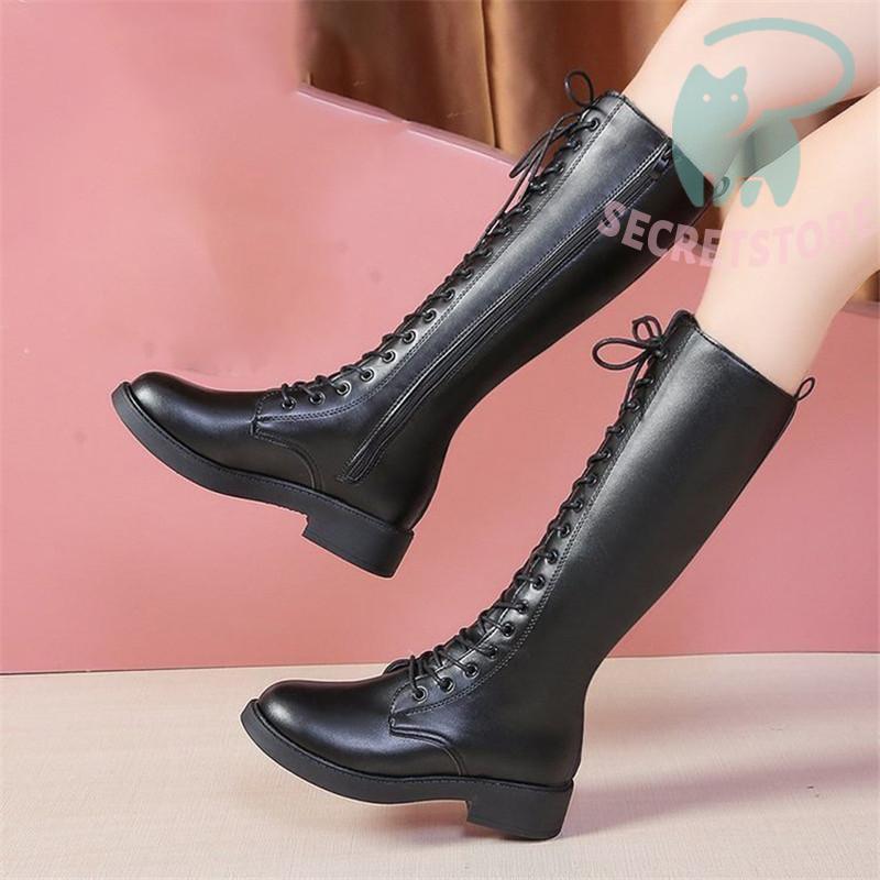 ロングブーツ レディース ロング丈 太ヒール スクエアトゥ トレンド シンプル レース編み上げ 裏起毛 おしゃれ 歩きやすい 履きやすい ファスナー付き
