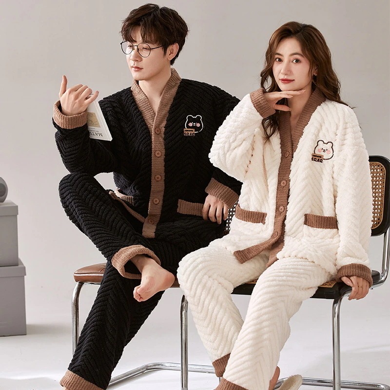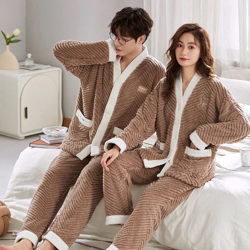 レディース ルームウェア 上下セット 冬 長袖 メンズ ルームウェア ペアパジャマ 前開き もこもこ 部屋着 フランネル パジャマ 結婚祝い プレゼント