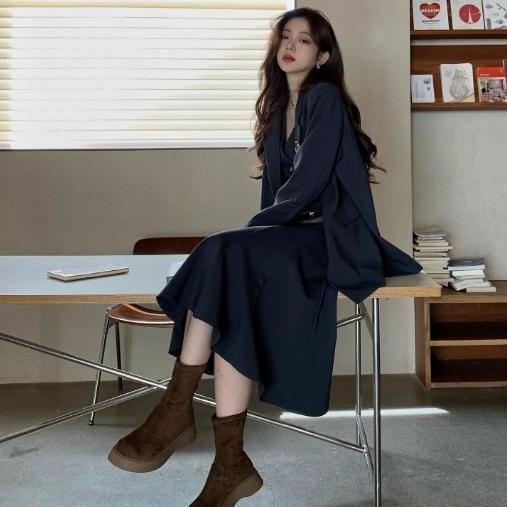 ツーピーススーツコートウエストコートビスチェスカート韓国レトロスーツシニア感覚ファッションカジュアルレディーススリーピーススーツ セットアップ