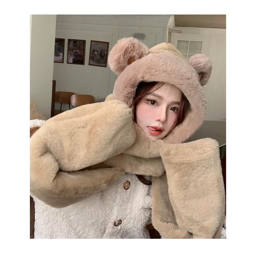 冬用の可愛いくまのモフモフ素材で保温性のスカーフです 耳あて イヤーマフラー
