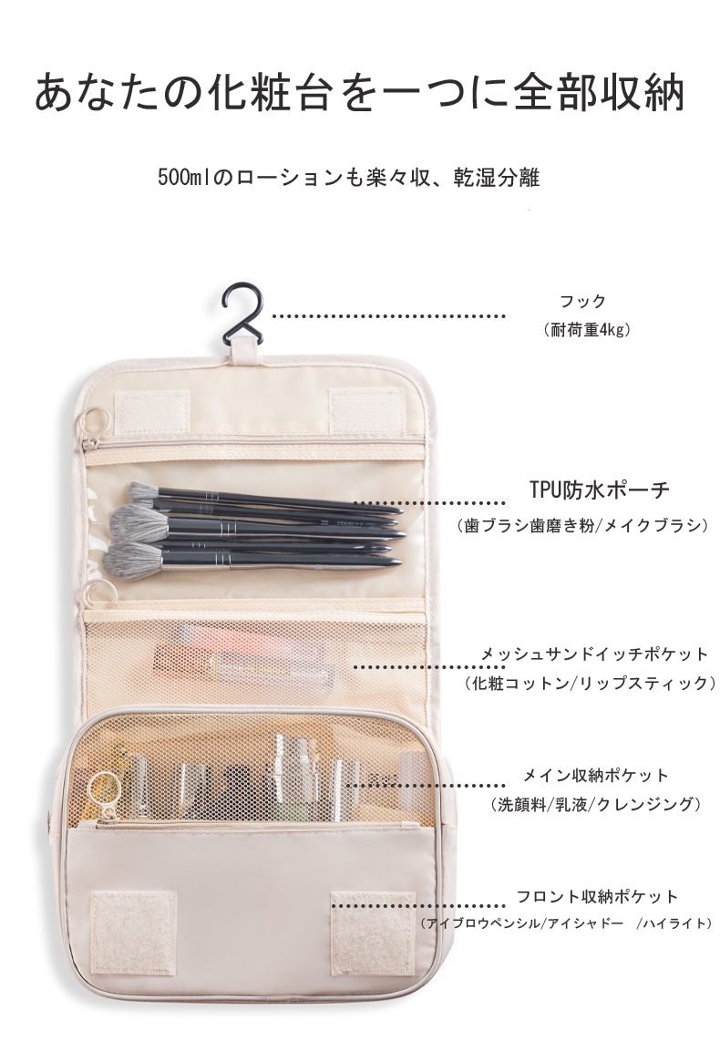 携帯に便利な旅行用トイレタリーバッグ 大容量 ポーチ ポーチ