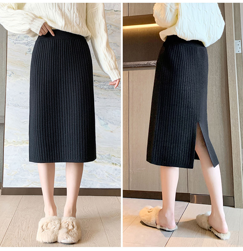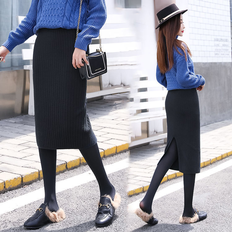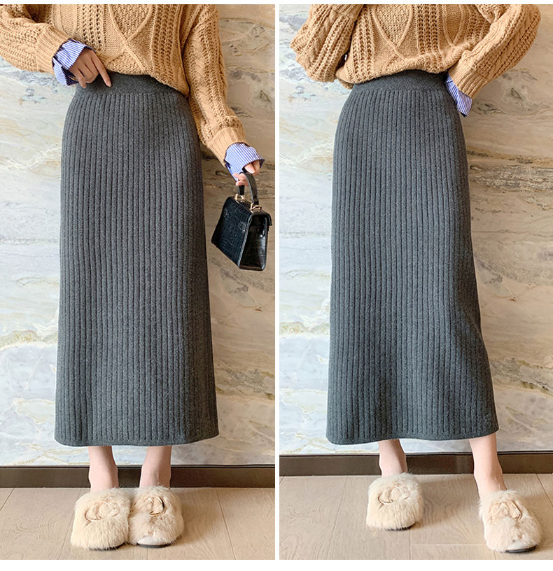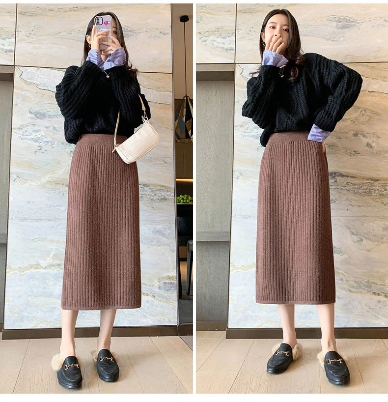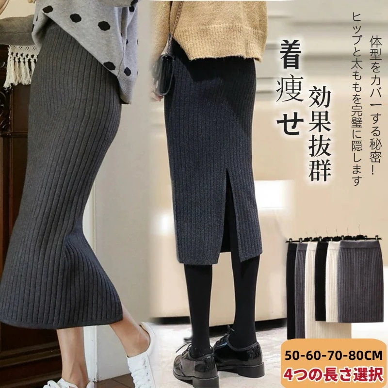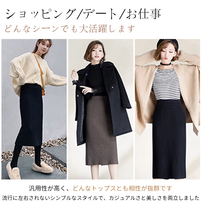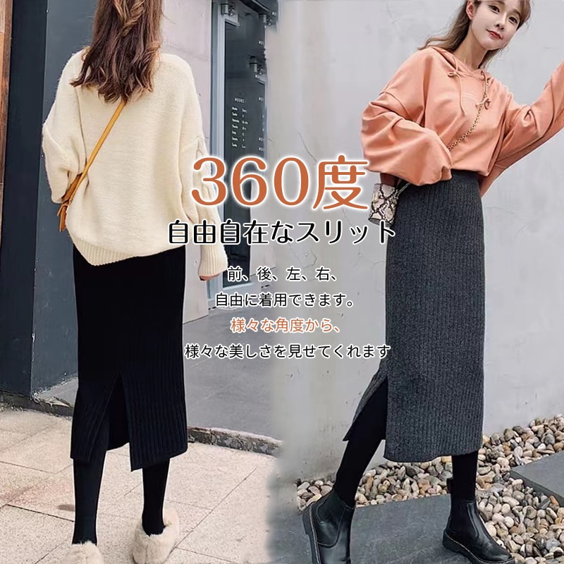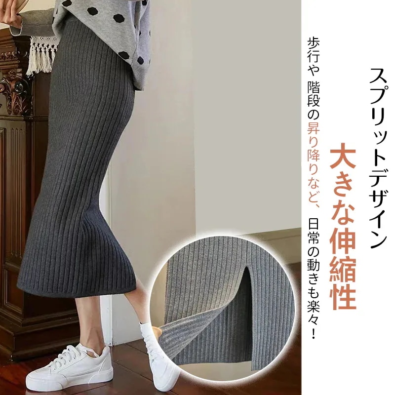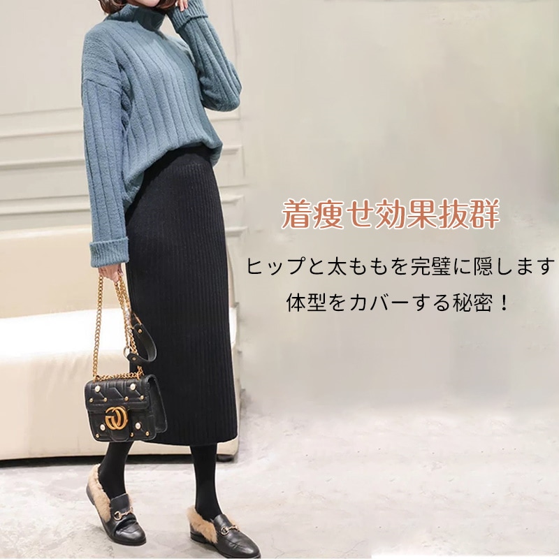 韓国ファッション フレアスカート 大人気 ニット スカート 気質 着やせ 小柄 大きめ 秋冬 厚手 裏起毛 レディース スカート ロングタイト