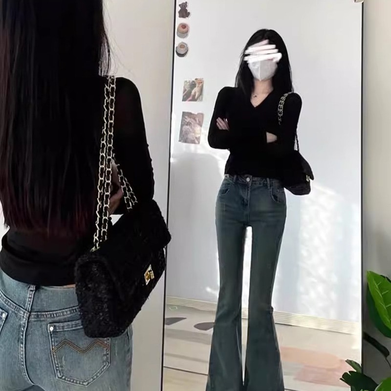 デニムパンツ ビジュー付き