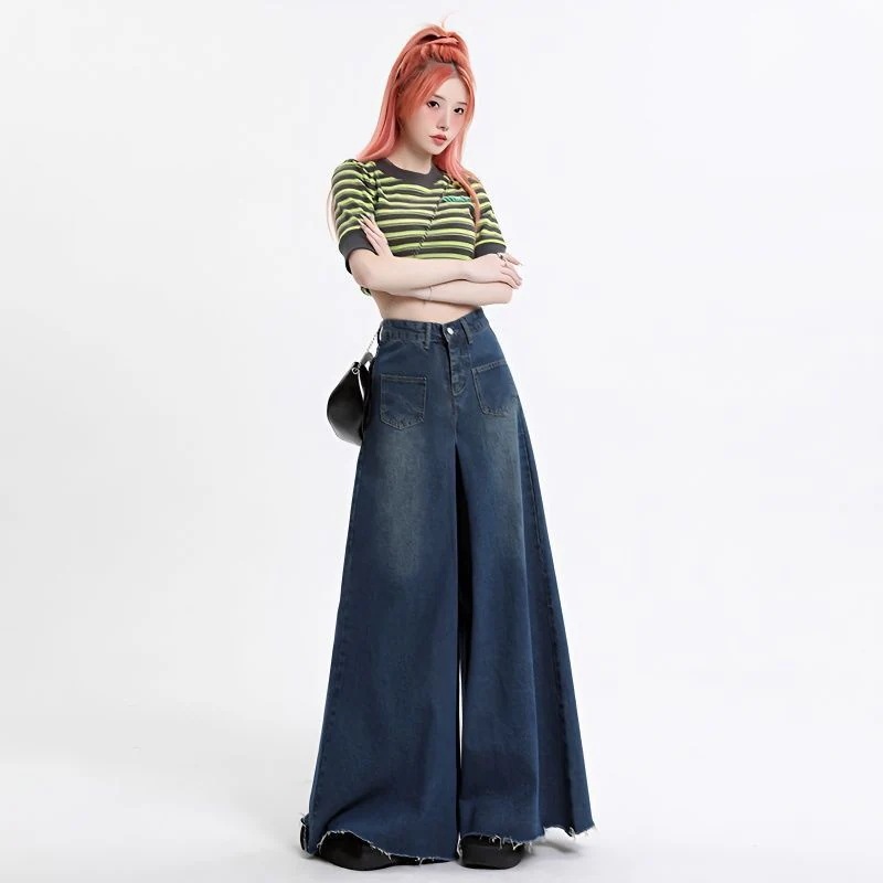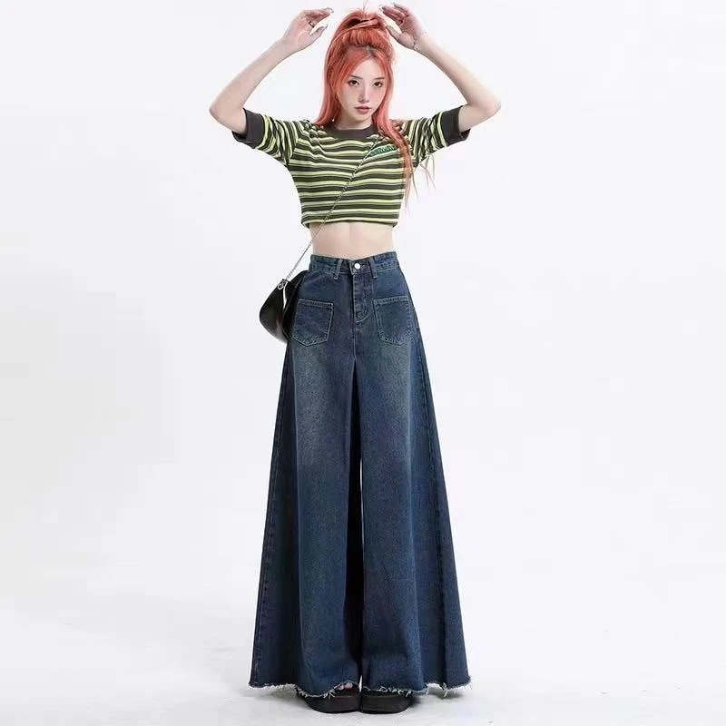 デニムパンツ2024新作 おしゃれ 流行り ハイウエスト ワイドパンツ ジーンズ レディース レトロ ゆったり ズボン スラックスパンツ デニム スキニーパンツひんや