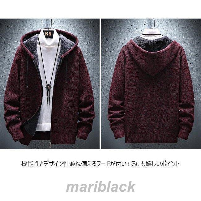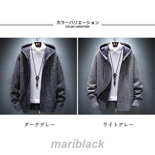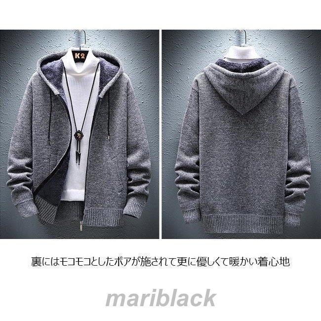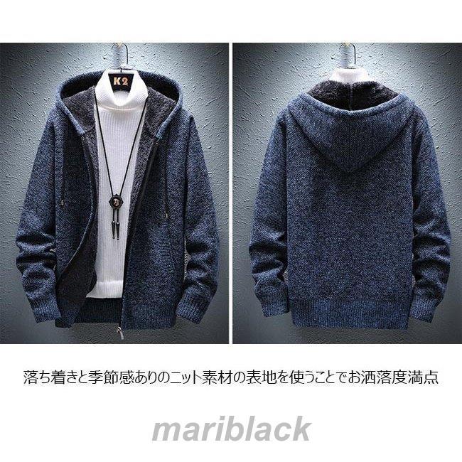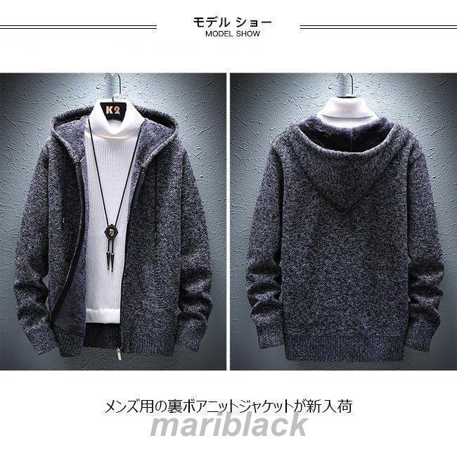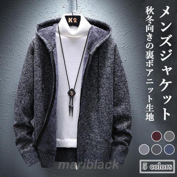 裏ボア メンズ ニット 厚手 ムートン フード付き 裏ボア パーカー 冬 ジャンパー 裏ボアパーカー ジャンパー ブルゾン