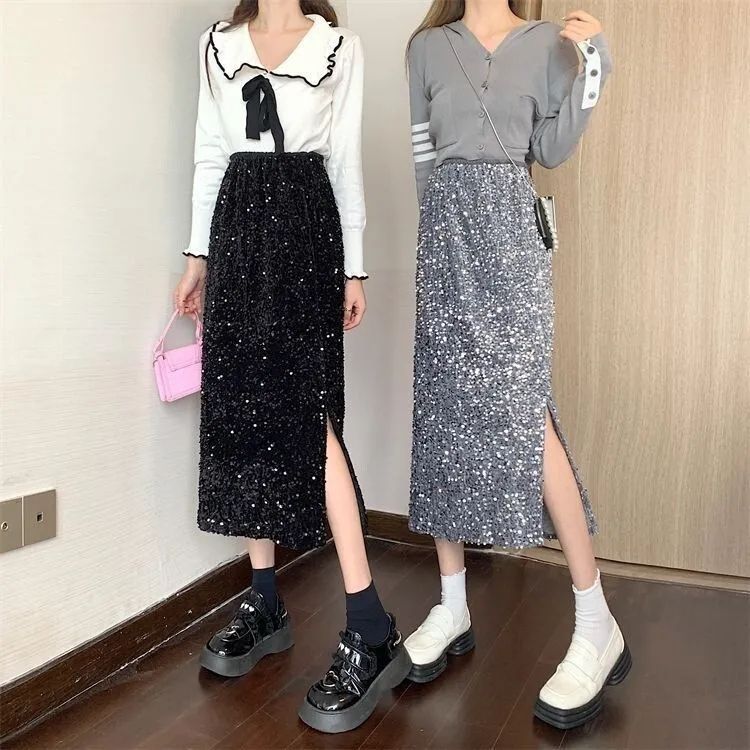 秋 冬 ロングスカート レディース 韓国ファッション タイトスカート 気質 スカート 体型カバー 着痩せ ロングスカート