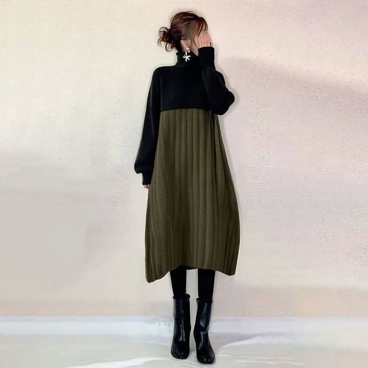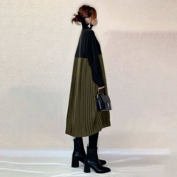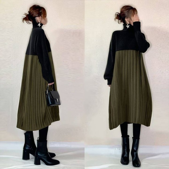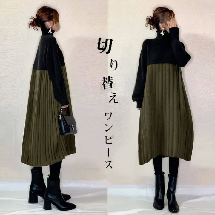 レディースワンピース ハイネック長袖 セーターワンピース新作 高級感 秋冬 通勤 長袖ロング マキシ丈ワンピ