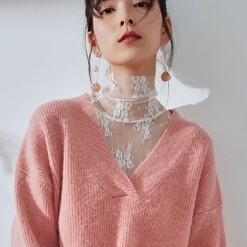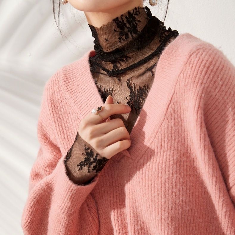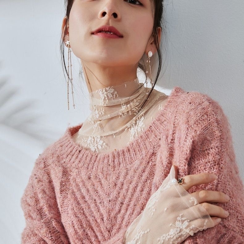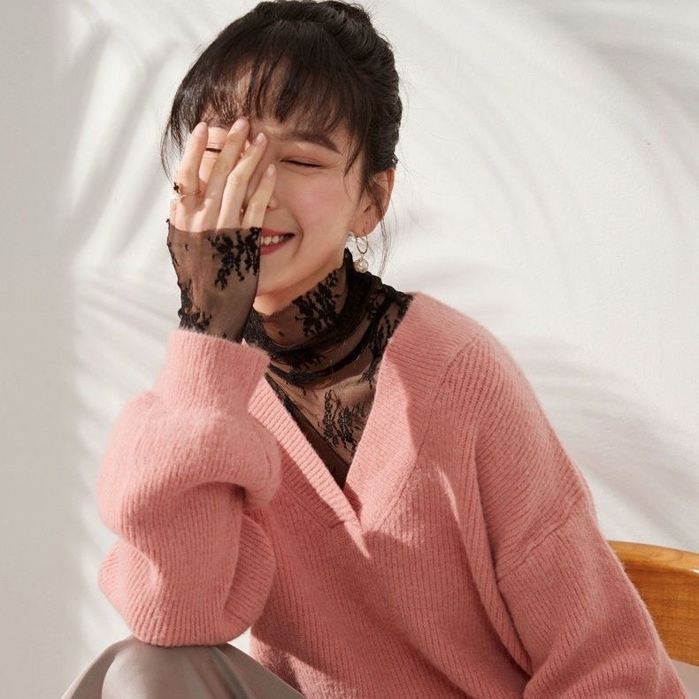 2025人気 流行りおしゃれ 肌隠し レース メロー 透け感 インナー 気質重ね着 セクシー ブラウス 薄手長袖トップス シースルー Tシャツ 韓国ファッション百掛け アンダーウェア