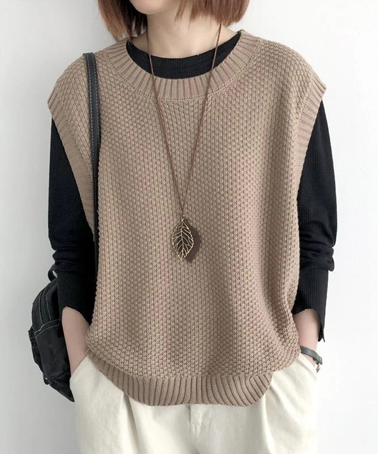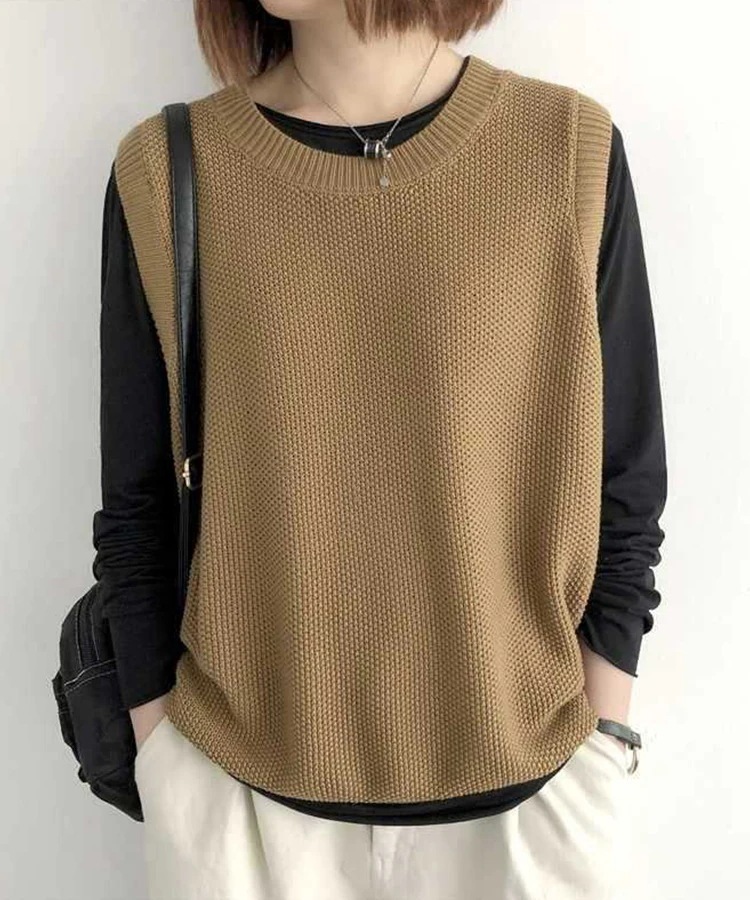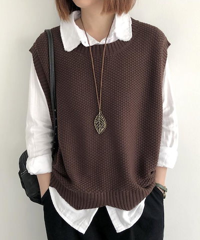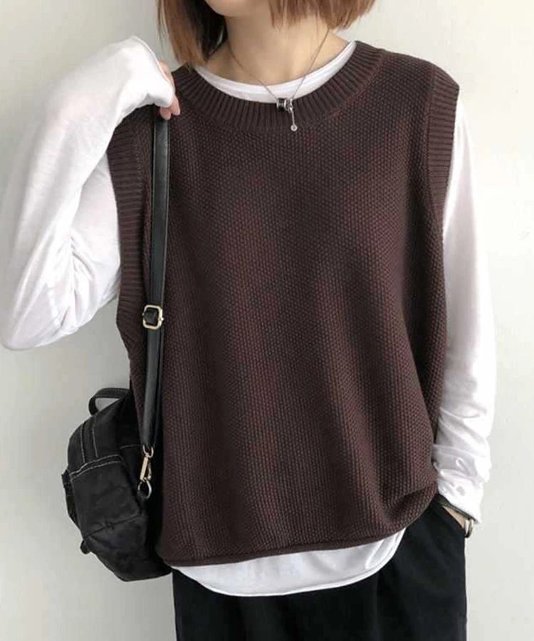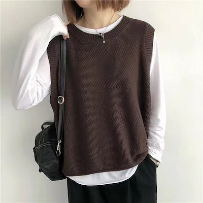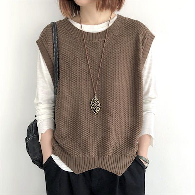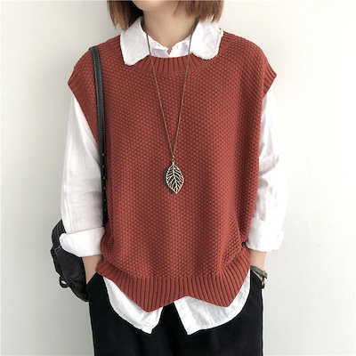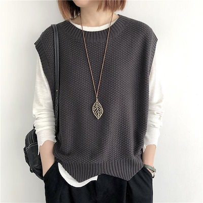 ニット ベスト レディース 秋 冬 ゆったり トップス 2TYPE 裾スカラップ 着回し 裾くるり ノースリーブ おしゃれ ペプラム カジュアル 重ね着 薄手 オーバーサイズ 春 伸縮性