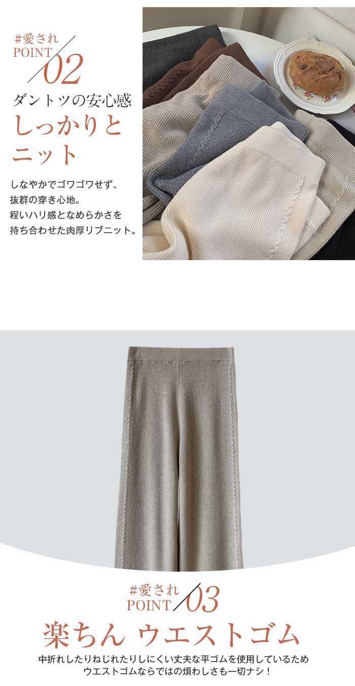厚手 ニットパンツ レディース 秋冬 体型カバー ワイドパンツ リブニット ボトムス リブ ロング パンツ きれいめ イージーパンツ ワイド リブ ストレート リブパンツ 長ズボン ウェストゴム