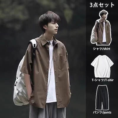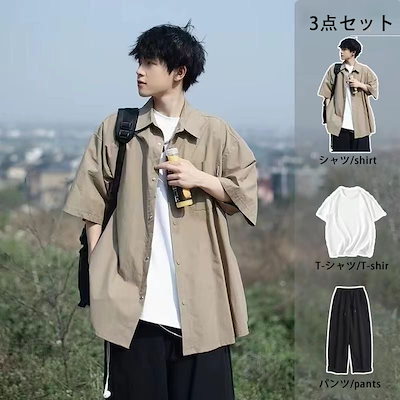 セットアップ メンズ 夏 3点セット Tシャツ 半袖 パンツ ゆったり快適 メンズファッション セットアップ