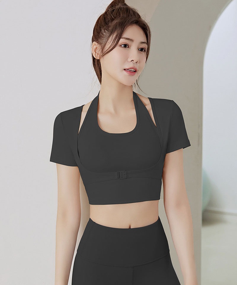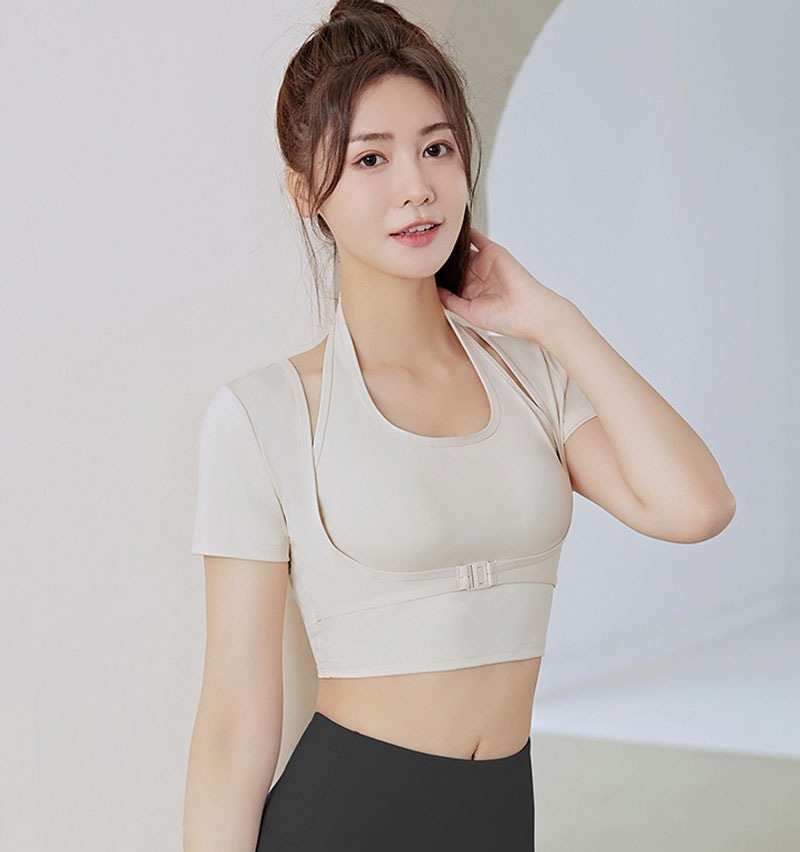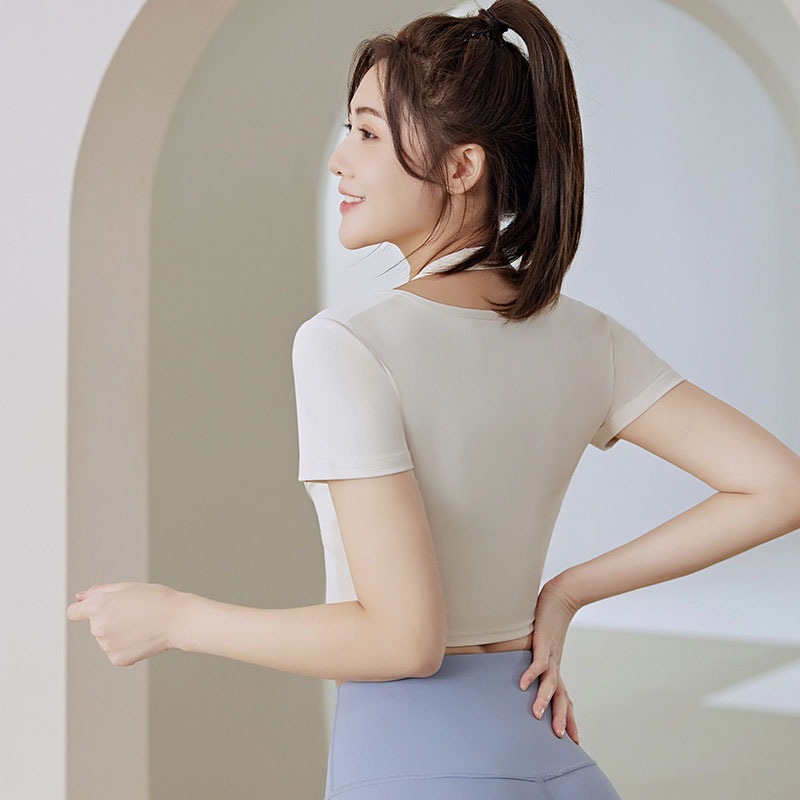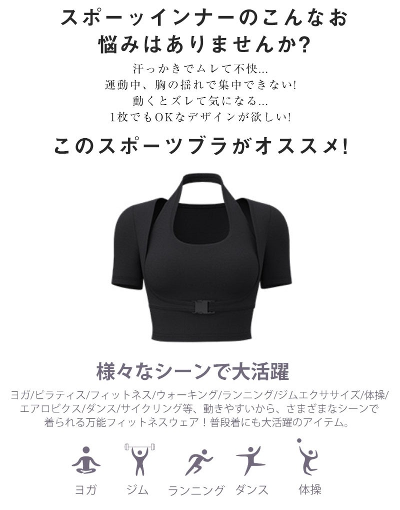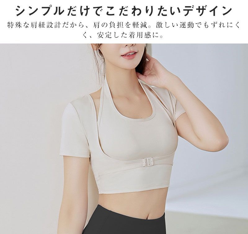 ヨガウェア トップス カップ付 パッド付き 半袖 ホットヨガ ブラトップ付 フィットネスウェア ヨガ ランニング マラソン ピラティス おしゃれ かわいい ヨガウェア リー