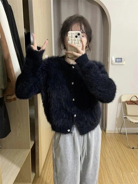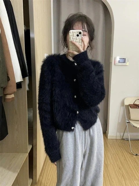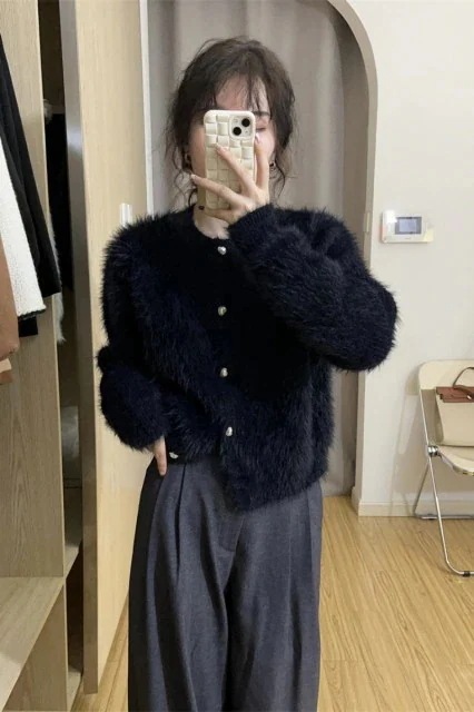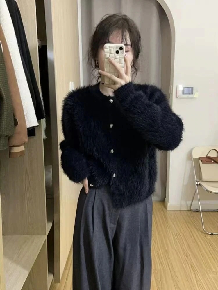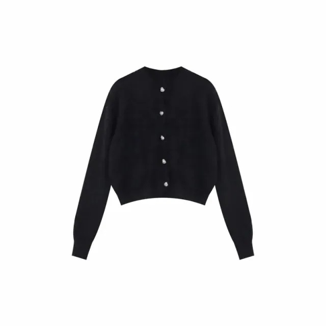 カーディガン レディース アウター シャギーニット ボレロ ショート丈 ブラック ハートボタン Tシャツ カットソー