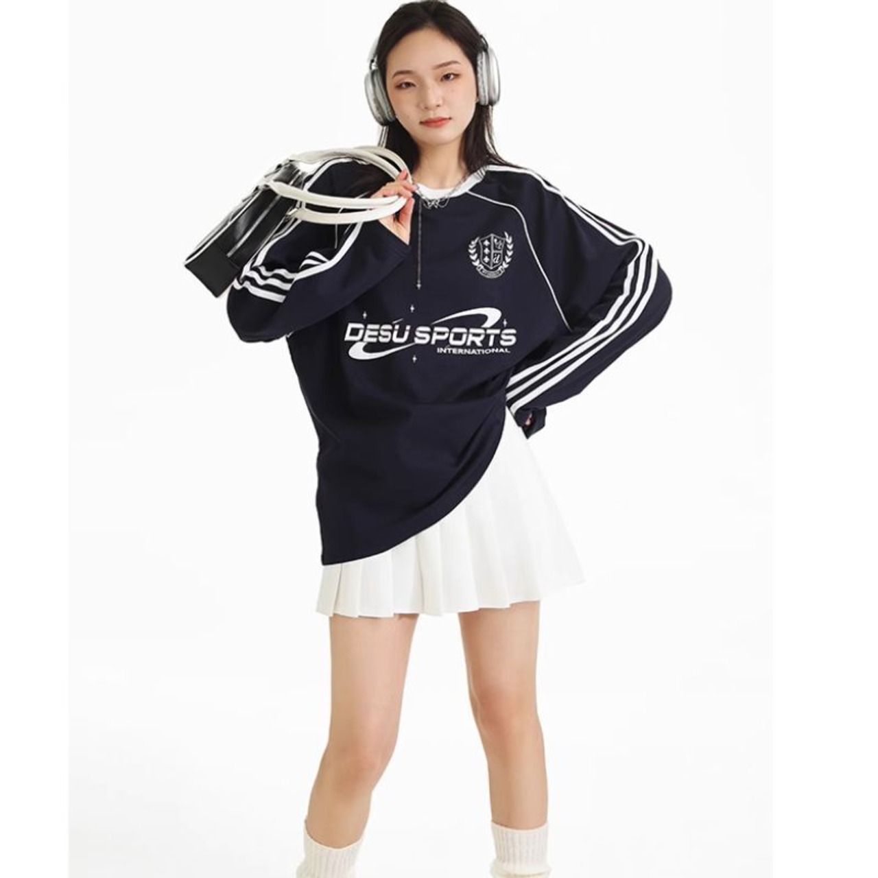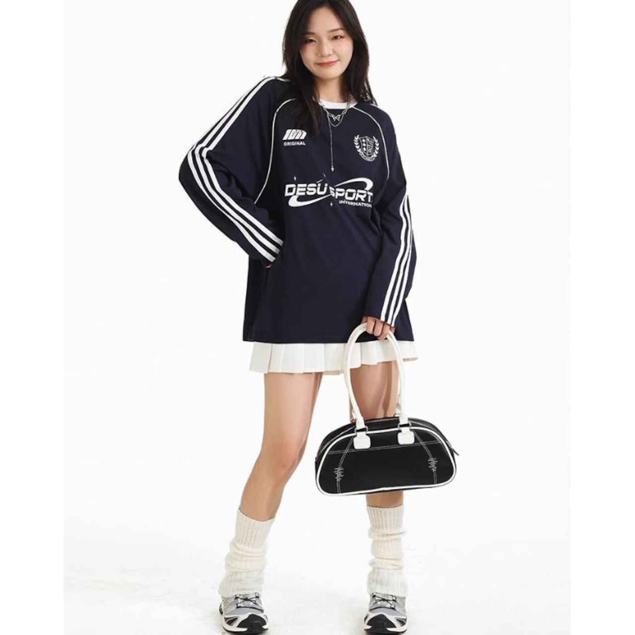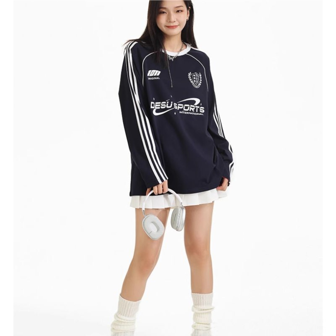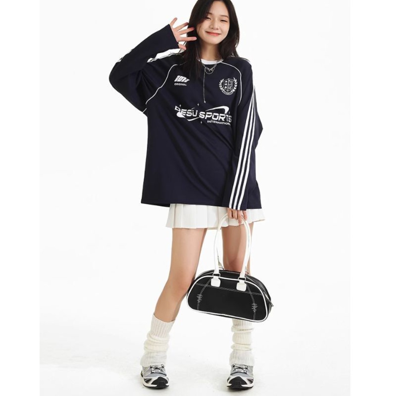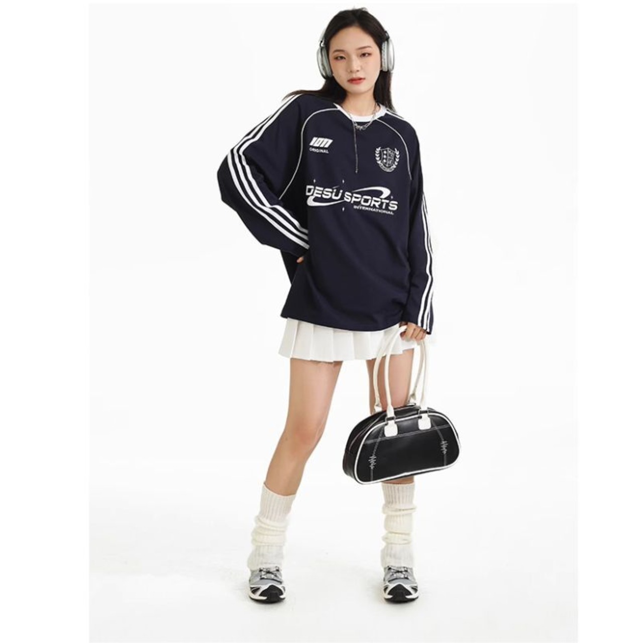 ロンT ビッグシルエット オーバーサイズ カジュアル スポーティー エンブレム 韓国ファッション Tシャツ カットソー