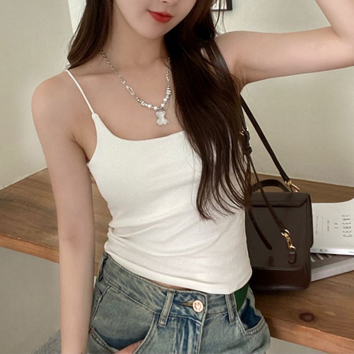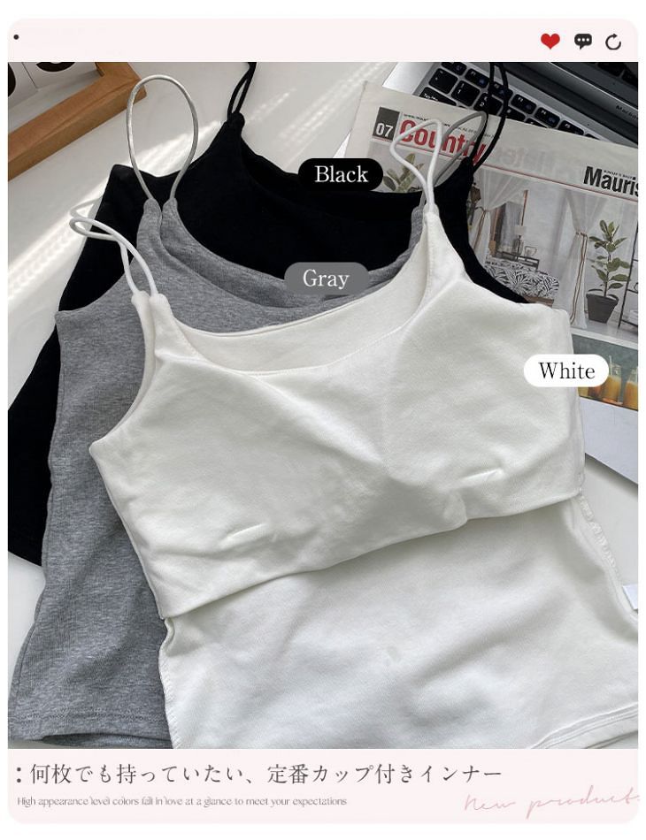キャミキャミソールインナールームウェアノンワイヤーカップ付きタンクトップ綿コットンノンストレス下着無地夏カジュアルきれいめシンプルレディース韓国ファッション