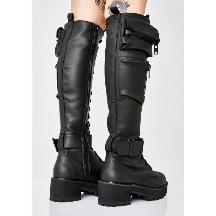ロングブーツ レディース 美脚 ジョッキーブーツ おしゃれ 厚底ブーツ レースアップ 編み上げ おしゃれ ファッション 歩きやすい ブーティー