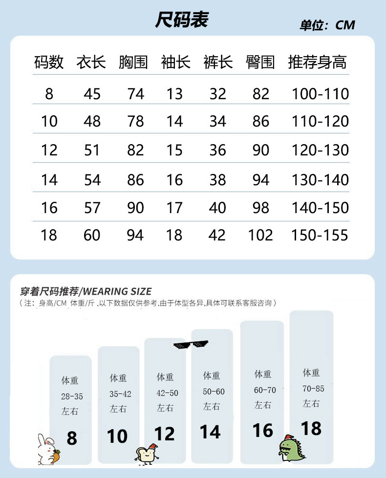 身長に合わせて: サイズ 8 (推奨身長: 100--110CM) サイズ 10 (推奨身長: 110--120CM) サイズ 12 (推奨身長: 120--130CM) サイズ 14 (推奨身長: 130--140CM) サイズ 16 (推奨身長: 140--150CM) サイズ 18 (推奨身長: 150--155CM)