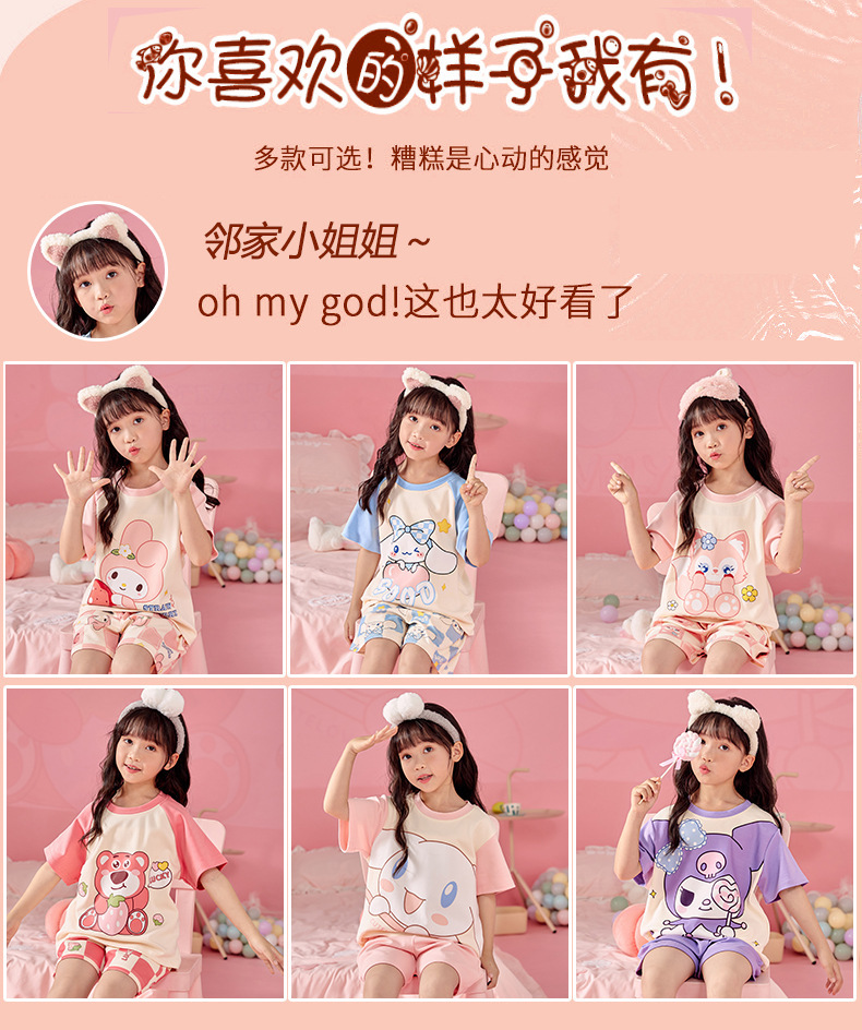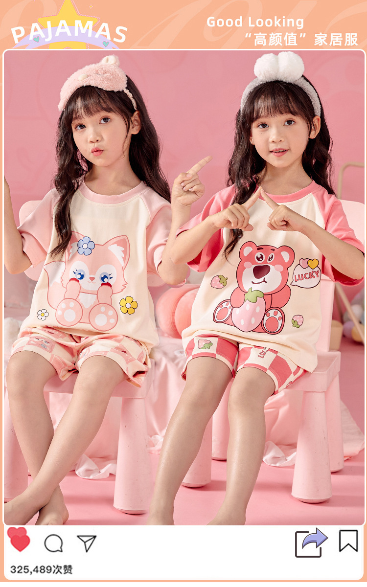 子供用パジャマ女の子かわいい巾着子供用ホーム服半袖男の子女の子通気性パジャマ パジャマ