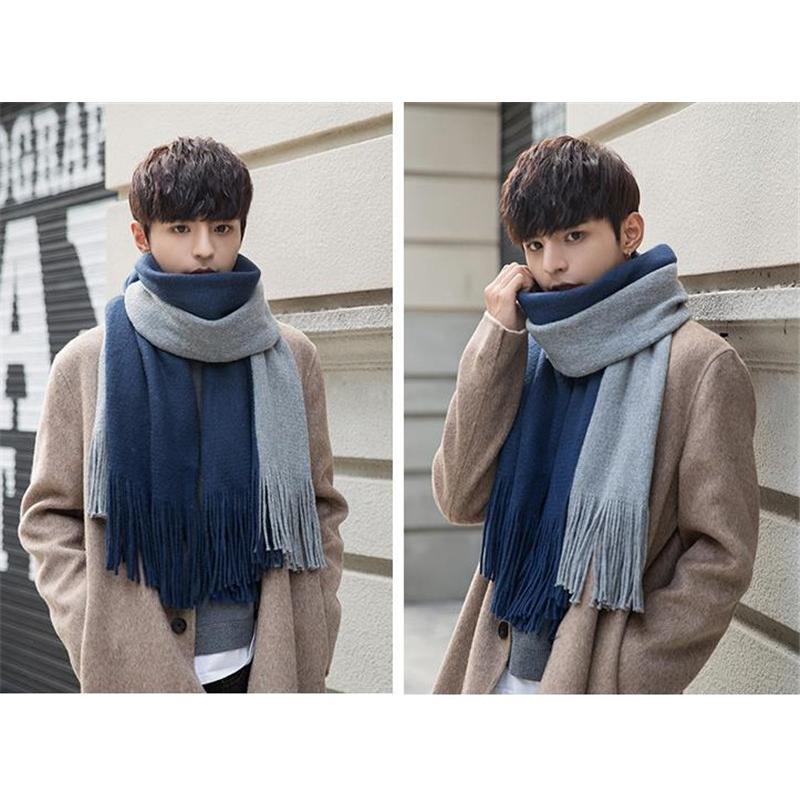 半額セール メンズマフラー ロング 大判 スカーフ バイカラー フリンジ 保温 男女兼用 カジュアル おしゃれ ペア 秋冬 厚手 通勤通学 紳士