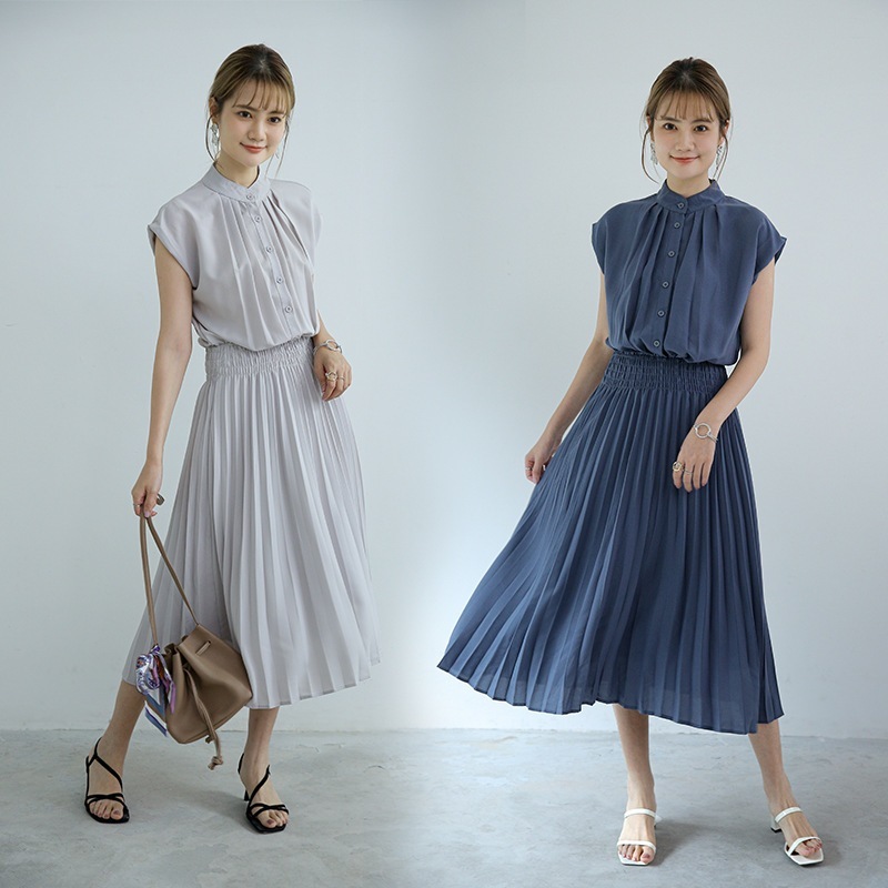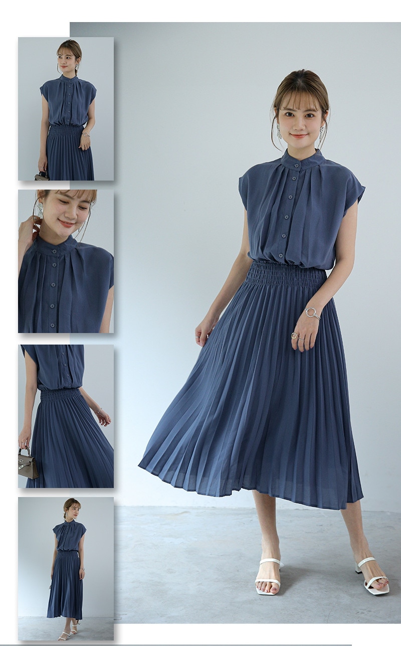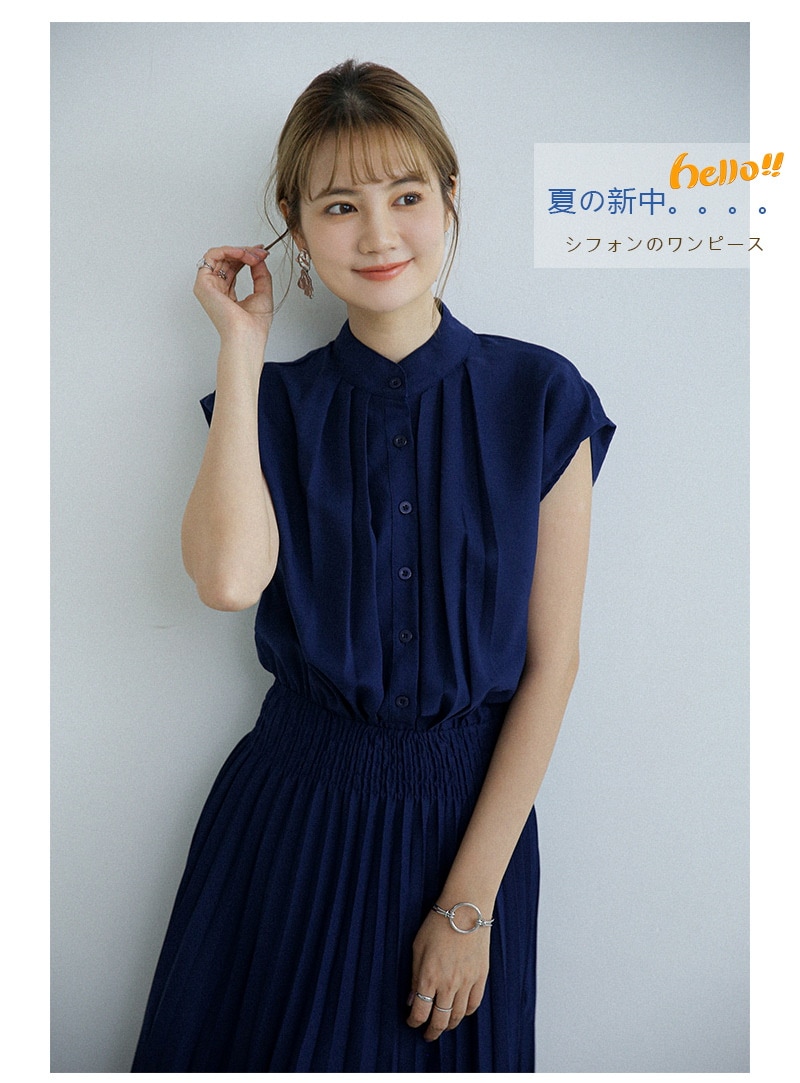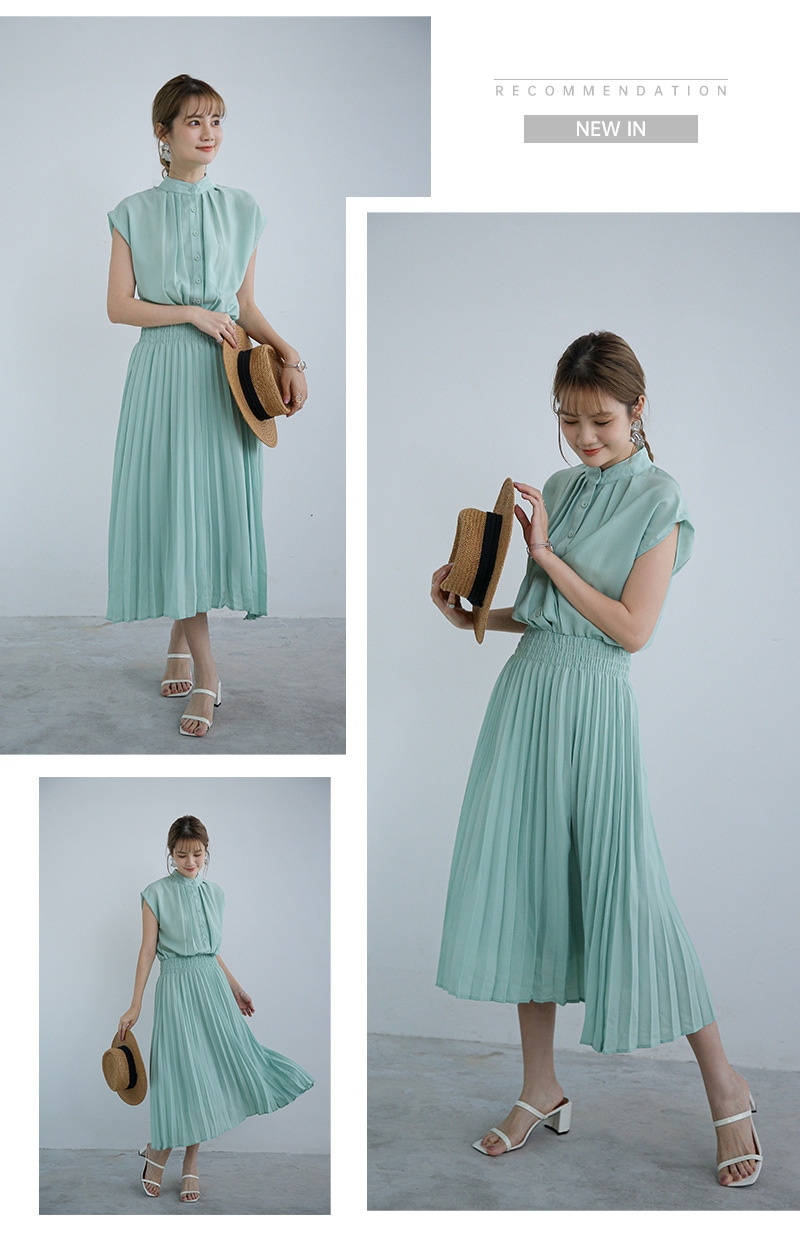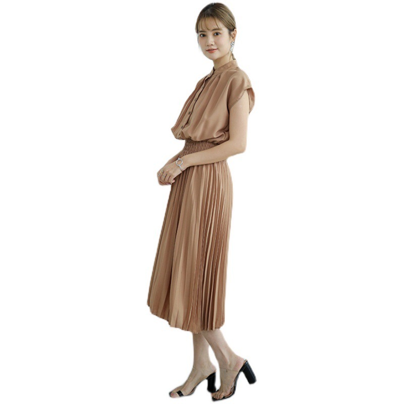 5色 リアルショット春と夏の新しいシフォン長袖プリーツドレススリミング薄い気質プリーツスカート 半袖ロング マキシ丈ワンピ