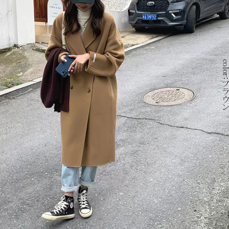 チェスターコート 秋冬 レディース 黒 テーラードコート コート ウールコート ロング丈 大きいサイズ アウター 長袖 コート ロング テーラード 長そで 無地 シンプル 柔らかい 着回し 通勤 ゆっ
