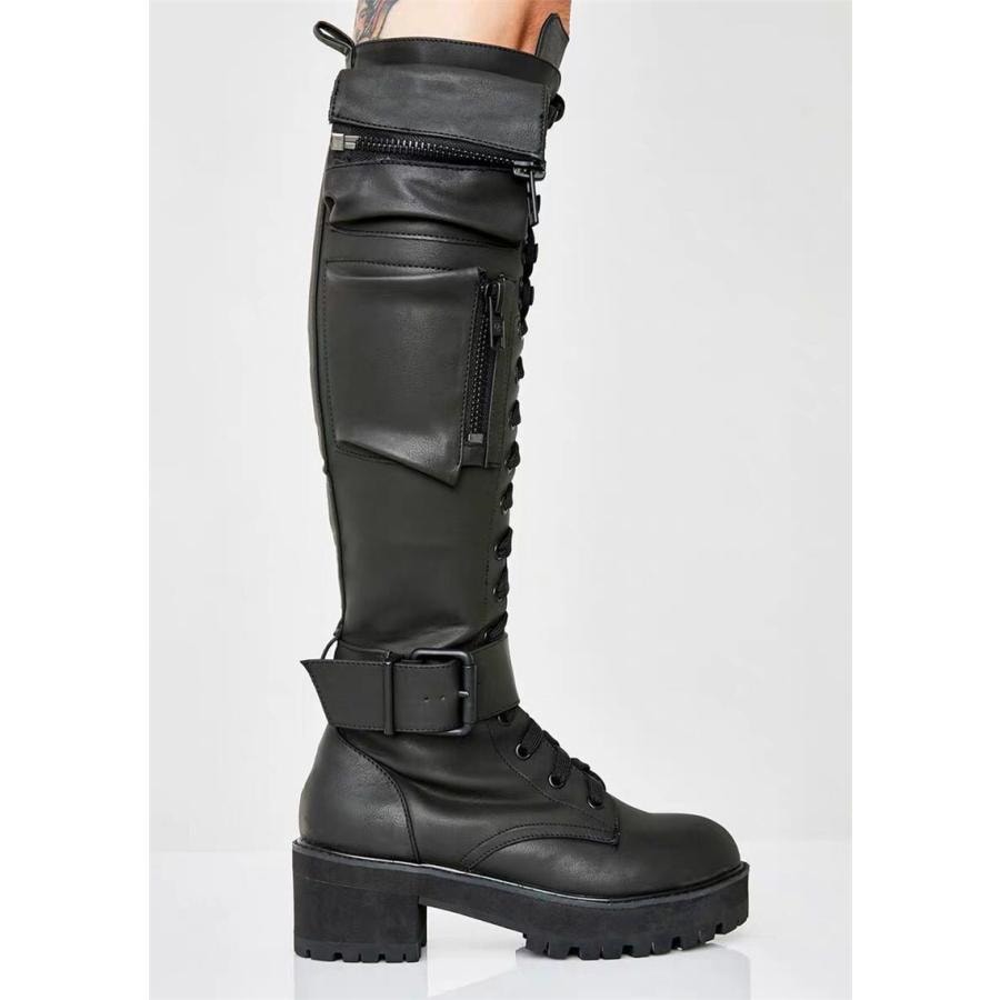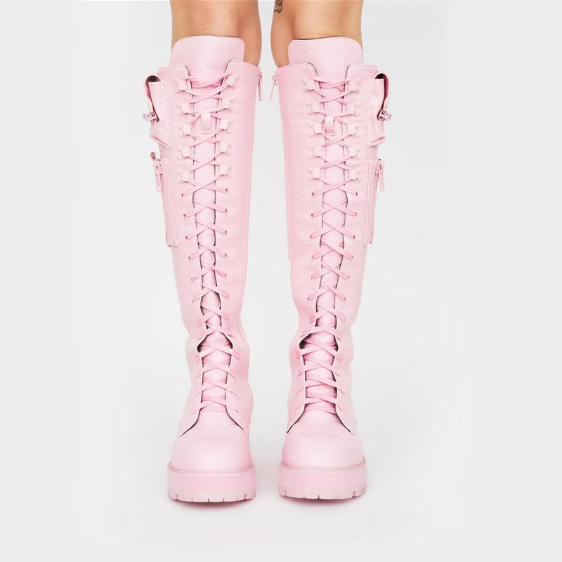 ロングブーツ レディース 美脚 ジョッキーブーツ おしゃれ 厚底ブーツ レースアップ 編み上げ おしゃれ ファッション 歩きやすい ブーティー