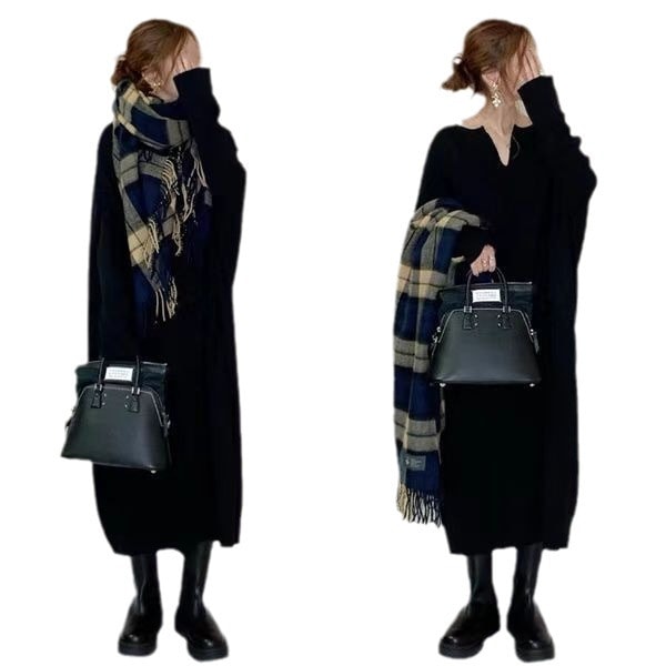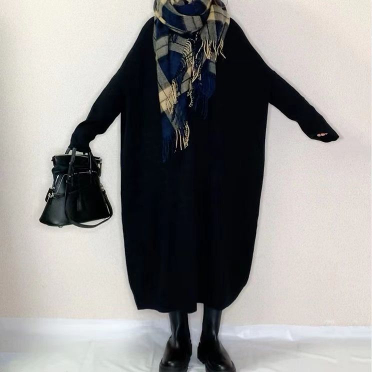 日系 大きめサイズ ニットワンピース スカート 新商品 長袖 ゆったり ワンピース秋冬 ロングワンピース シャツワンピース 着痩せ レディースファッション
