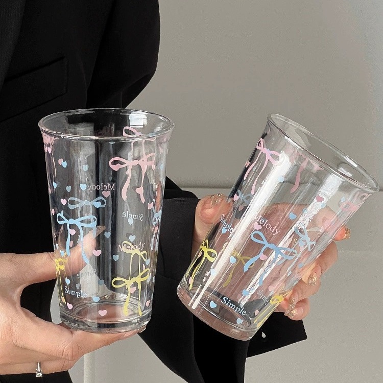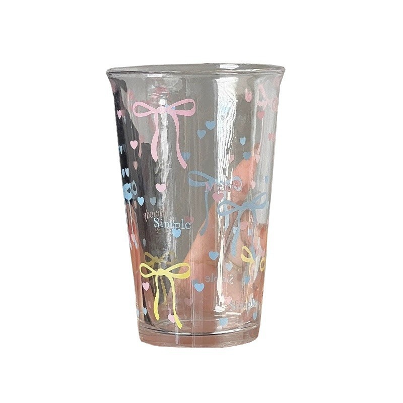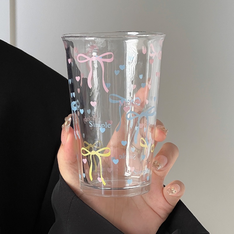 水カップ夏女性insプリントグラスジュースカップ水透明カップかわいい朝食カップ グラス