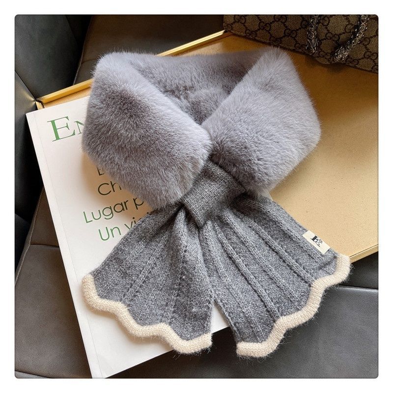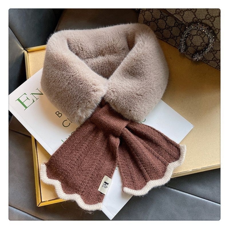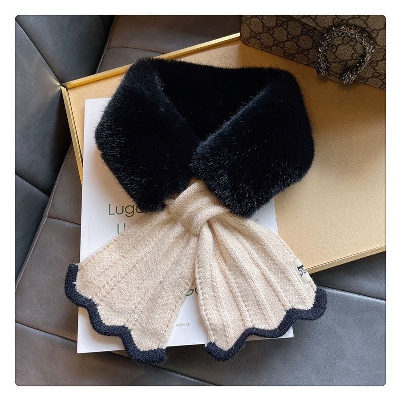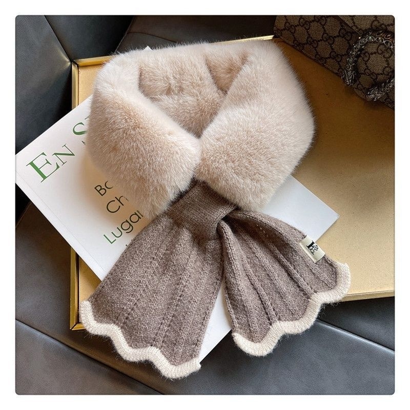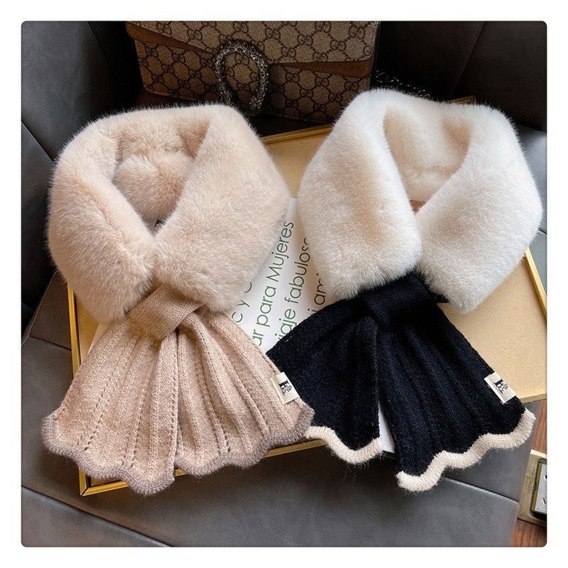 ファーマフラー ニット レディース かわいい ビジュー ティペット 白 黒 きれいめ おしゃれ フェイクファー エコファー ファー マフラー ネックウォーマー ストール 暖かい ネックカバー 付け襟