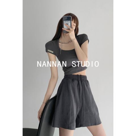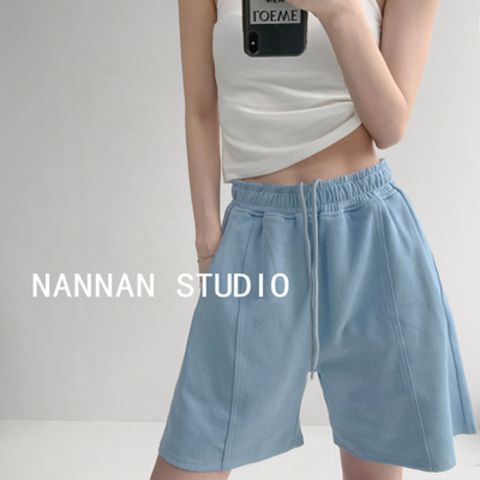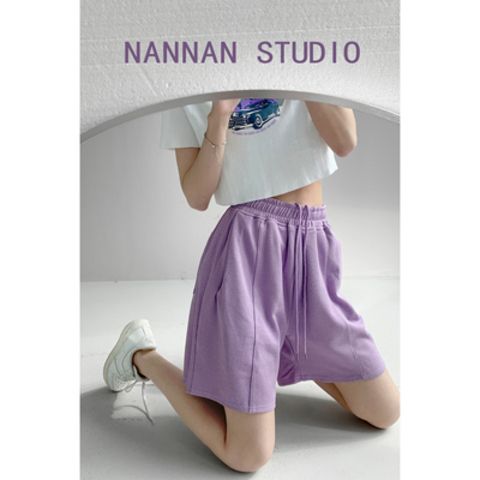 イージーパンツ スポーツパンツ 夏の薄手 ハイウエスト ストレートシリンダ やせて見える ワイドパンツ あちこち ロープ引き やせて見える 五分ズボン