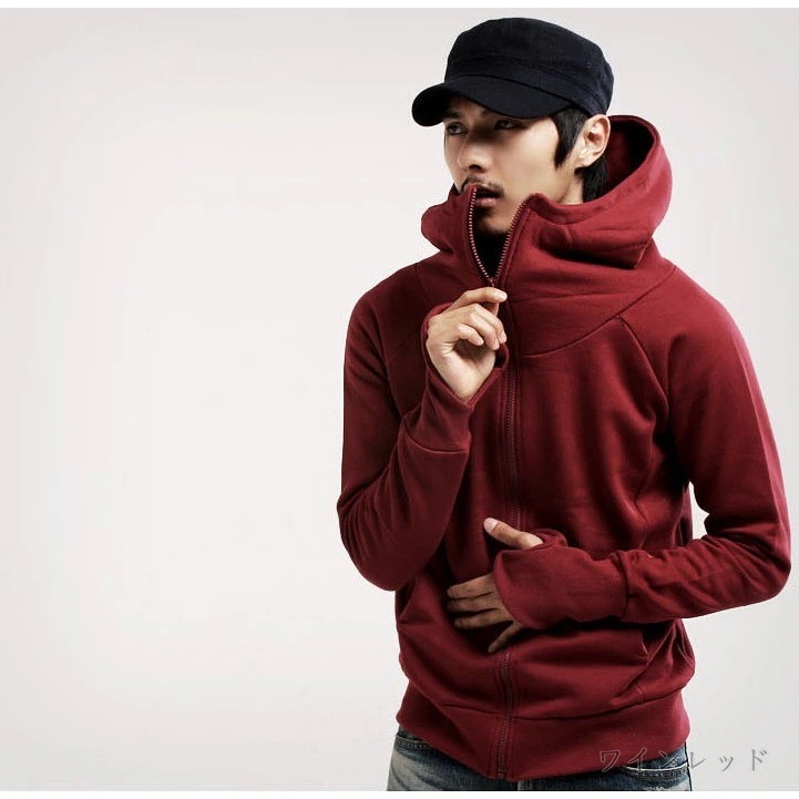 オープン記念 セール パーカー メンズ ジップアップ トレーナー 指穴 無地 ジャケット カジュアル 黒 赤 グレー 春 夏 秋 メンズファッション
