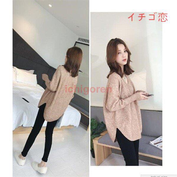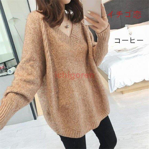 韓国ファッショニット セーター Vネック レディース トップス おしゃれ 可愛い ホワイト ニット