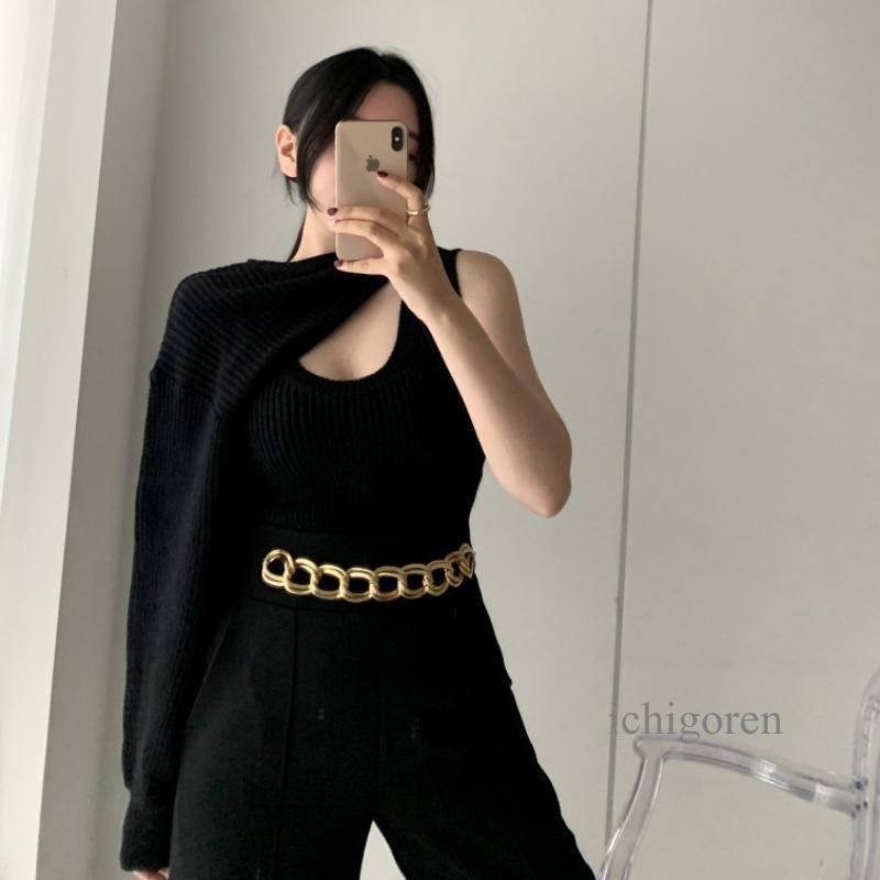 韓国ファッショ短丈ニット タンク アンサンブル レディース ショート丈 セーター 白 黒 ニット トップス 秋 冬 おしゃれ ニット