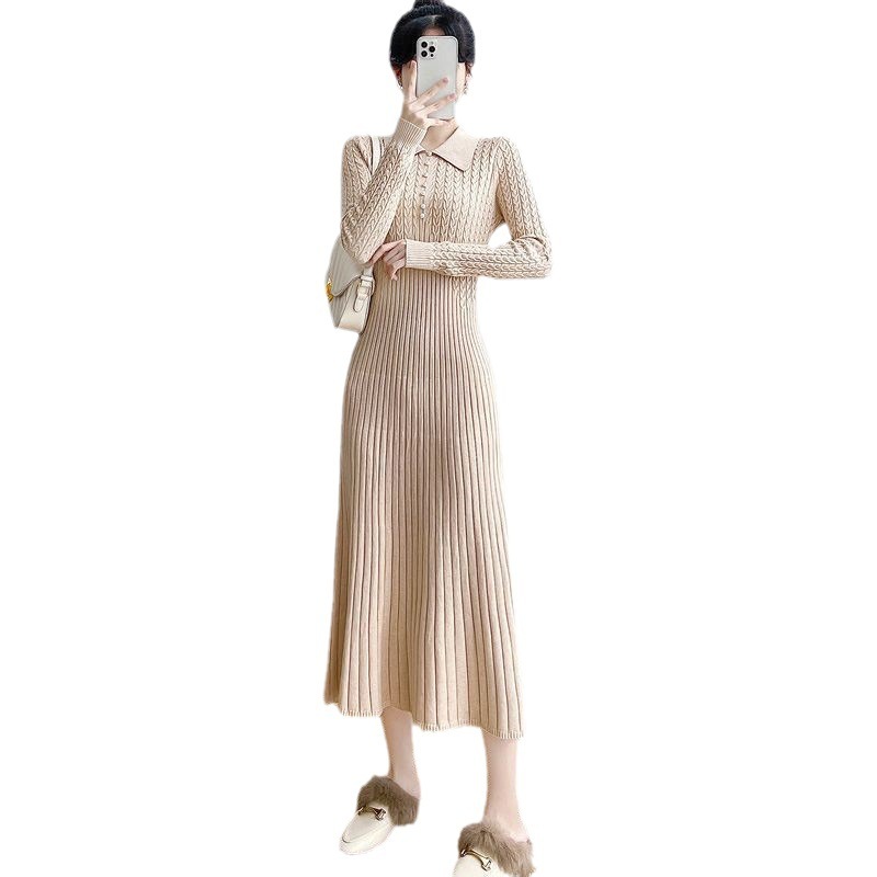 ワンピース フレンチスタイル レトロ コート付き インナー ニットワンピース 秋冬の新作 気質 膝下 ロングスカート レディース ボトムドレス 韓国ファッション 通勤 オフィス