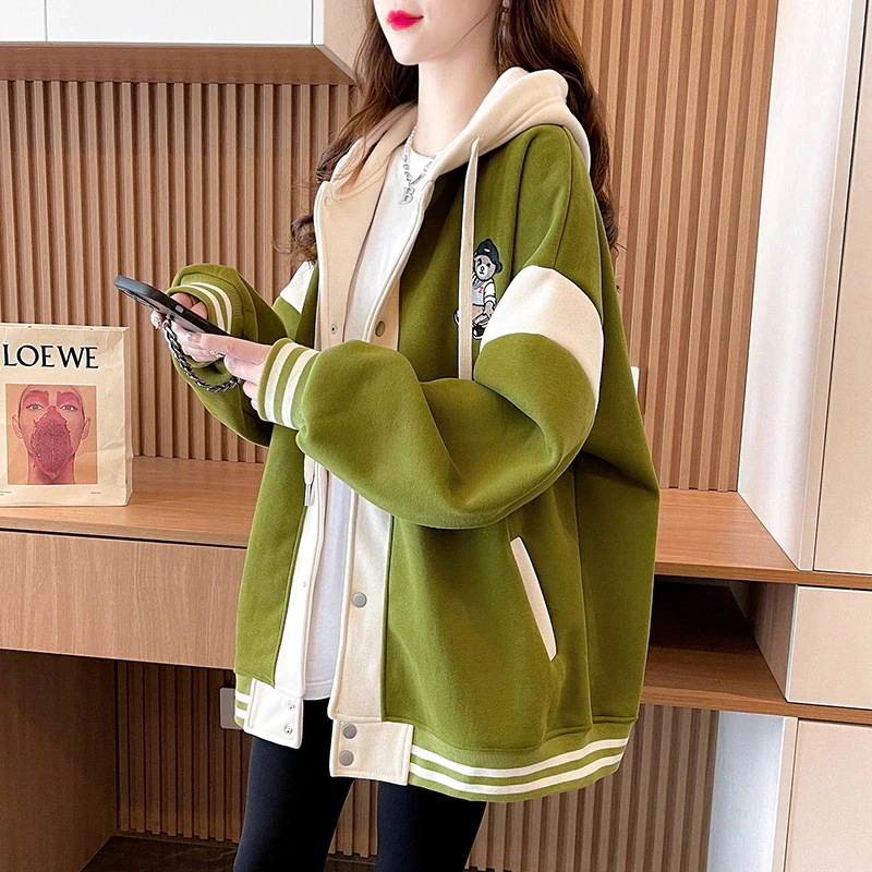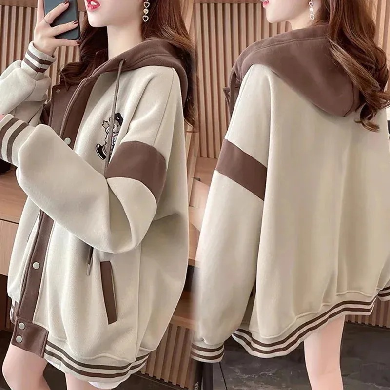 ジャケットメガ割 百掛け スウェット レディース フード付き ゆったり大人 本日の限定商品韓国 ルーズ スウェット コントラストカラー パーカー パーカー カーディガン