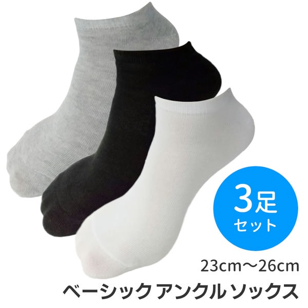 3足組 スニーカーソックス アンクルソックス くるぶし 靴下 男性 女性 男女兼用 ホワイト ブラック グレー 白 黒 23.0cm 23.5cm 24cm 24.5cm 25cm 25.5cm 26