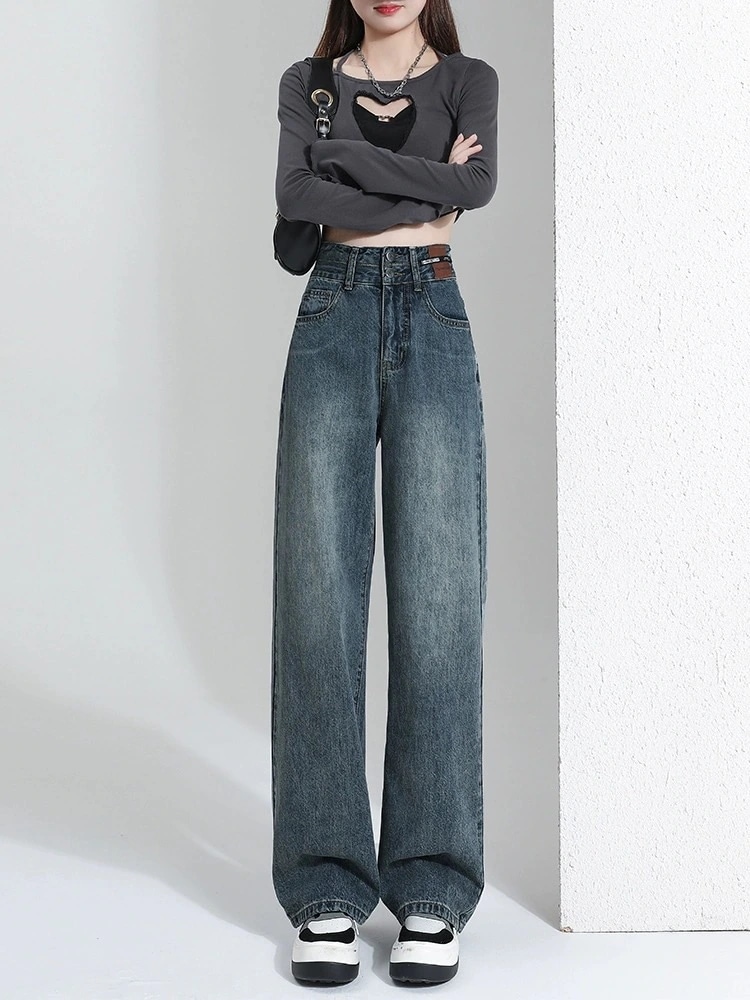 デニムパンツ スラックスパンツ ストレートジーンズ 美脚 着痩せ 春夏 ゆったり ワイドパンツ モップパンツ デニム ジーンズ